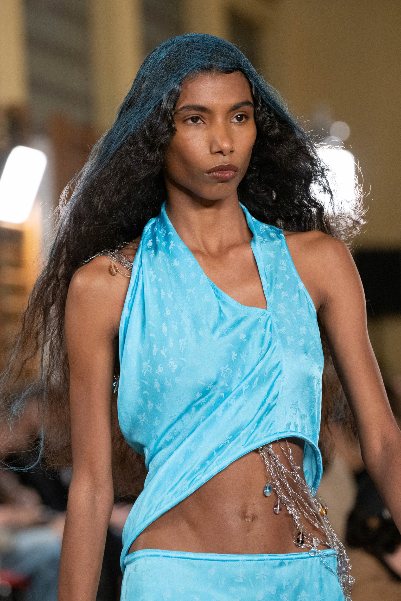 “Xâm chiếm” vào ngăn tủ trang sức của hội tín đồ từ mùa hè năm 2021, nhưng đến tận mùa Hè năm 2023 body chain vẫn giữ vững được phong độ của mình trên bảng xếp hạng xu hướng. Ở mùa Xuân Hè 2023, body chain cũng được đa dạng hóa với nhiều biến thể khác nhau - táo bạo và đặc sắc hơn rất nhiều thay vì chỉ đơn giản là những sợi dây chuyền dài quấn quanh người. Thâm chí còn có những body chain được chế tác cầu kỳ, phức tạp và dày dặn hơn, biến mình từ một loại trang sức hoàn thiện bộ trang phục thành một chiếc áo thời trang thật chuẩn chỉnh. Ngoài body chain, các thiết kế belt chain mùa này cũng là một trong những gợi ý hay ho mà hội tín đồ nên thử qua. Chiêm ngưỡng qua loạt dấu ấn trang sức trên sàn diễn Xuân Hè 2023 của các nhà mốt đình đám sau đây, phái đẹp đã có thể làm bộ cánh của mình tỏa sáng rồi đấy!