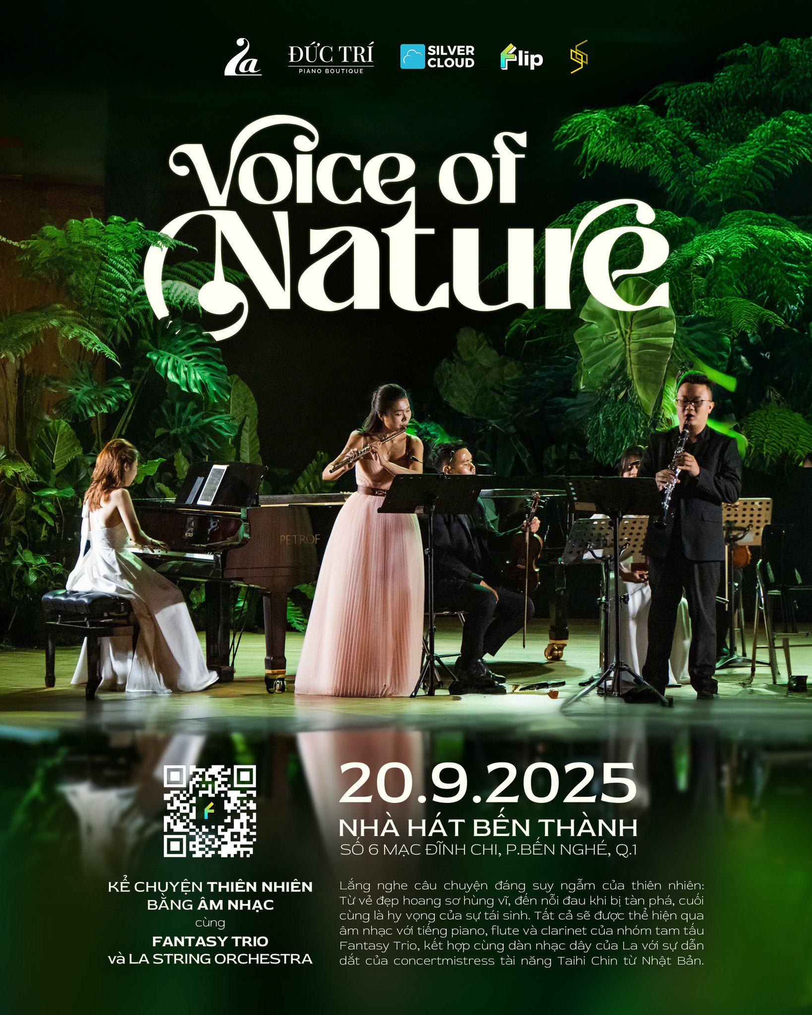 “Voice of Nature” trở lại, kể câu chuyện thiên nhiên bằng âm nhạc - không lời thoại, không dẫn dắt, chỉ có giai điệu dìu người nghe đi qua sự hùng vĩ, nỗi đau và cả những hồi sinh diệu kỳ của đất trời. Trong không gian Nhà hát Bến Thành, một cánh rừng sẽ hiện ra ngay trên sân khấu, nơi tiếng đàn, tiếng sáo, tiếng piano hòa quyện thành nhịp thở của thiên nhiên.