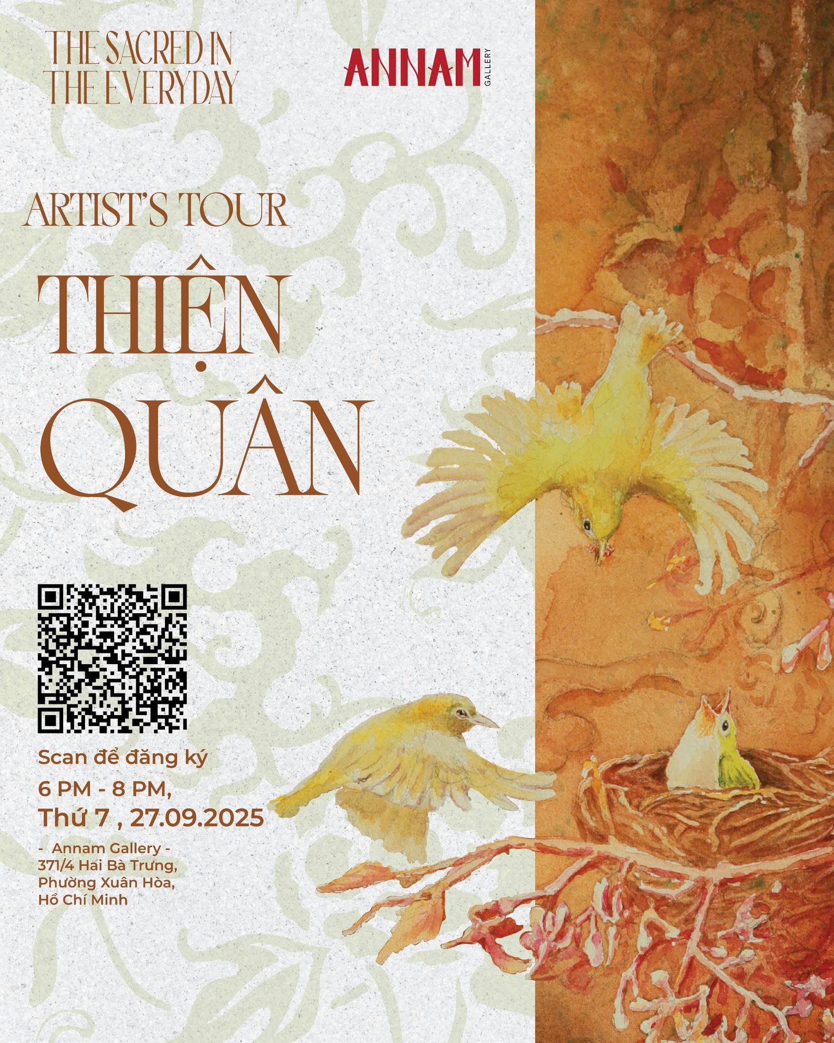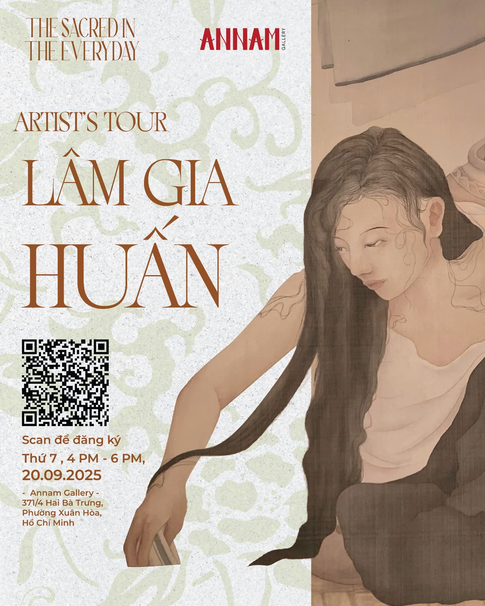 Triển lãm nhóm "The Sacred in the Everyday" tại Annam Gallery quy tụ ba nghệ sĩ trẻ Lâm Gia Huấn, Lê Trung Hiếu và Trần Văn Thiện Quân - những gương mặt được chọn từ Annam Open Art Call 2025.
