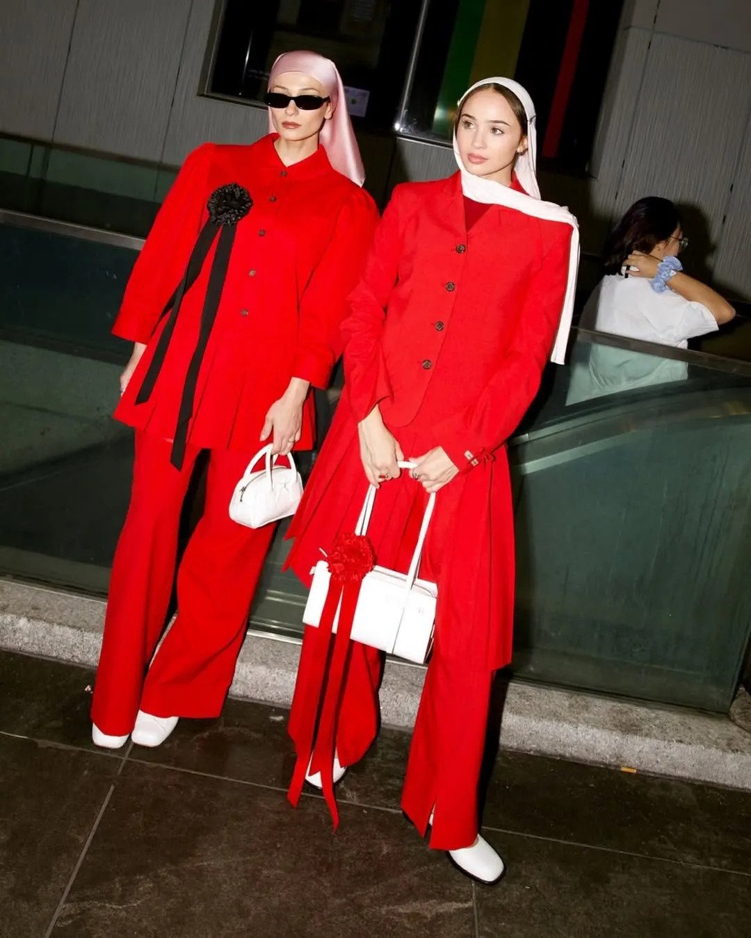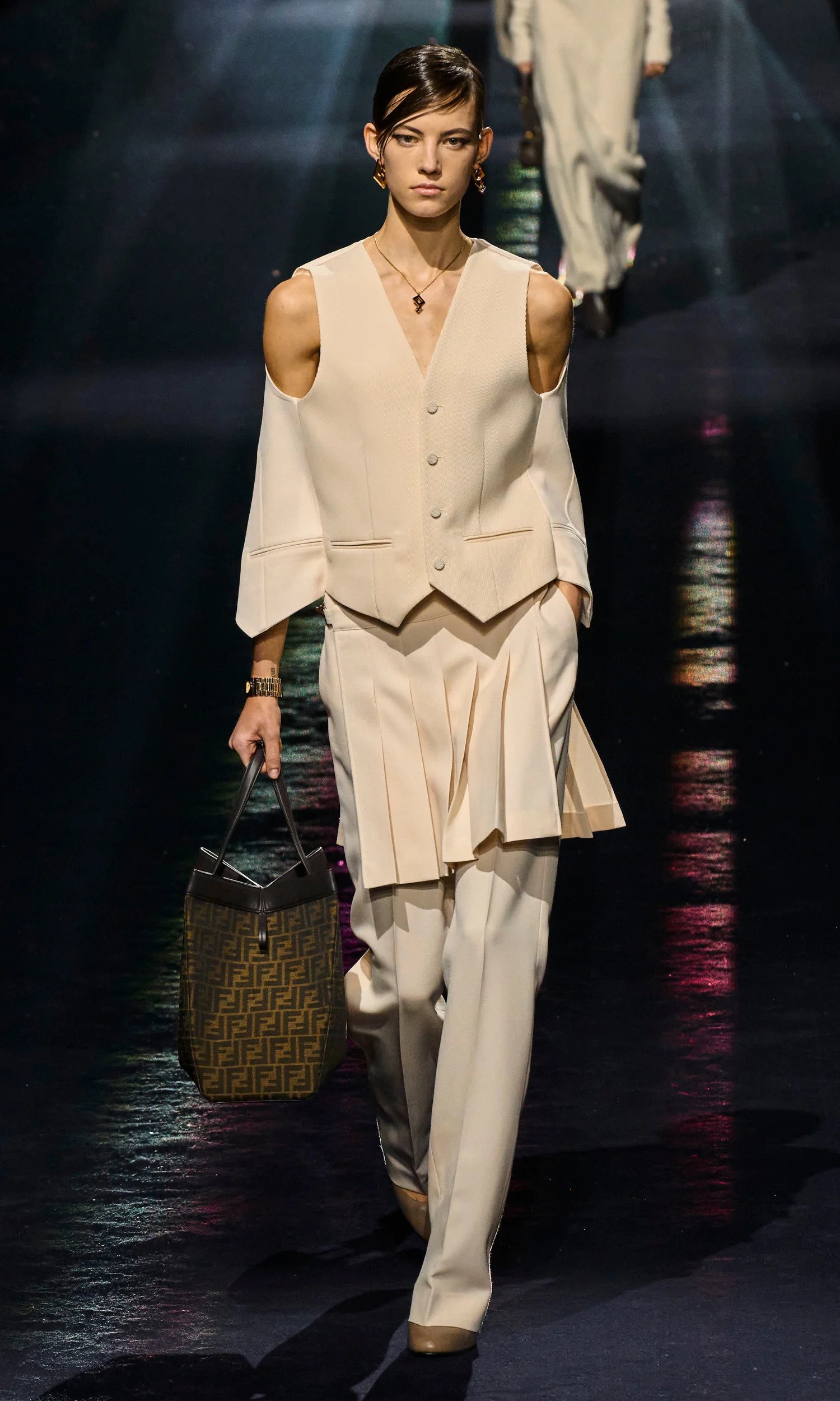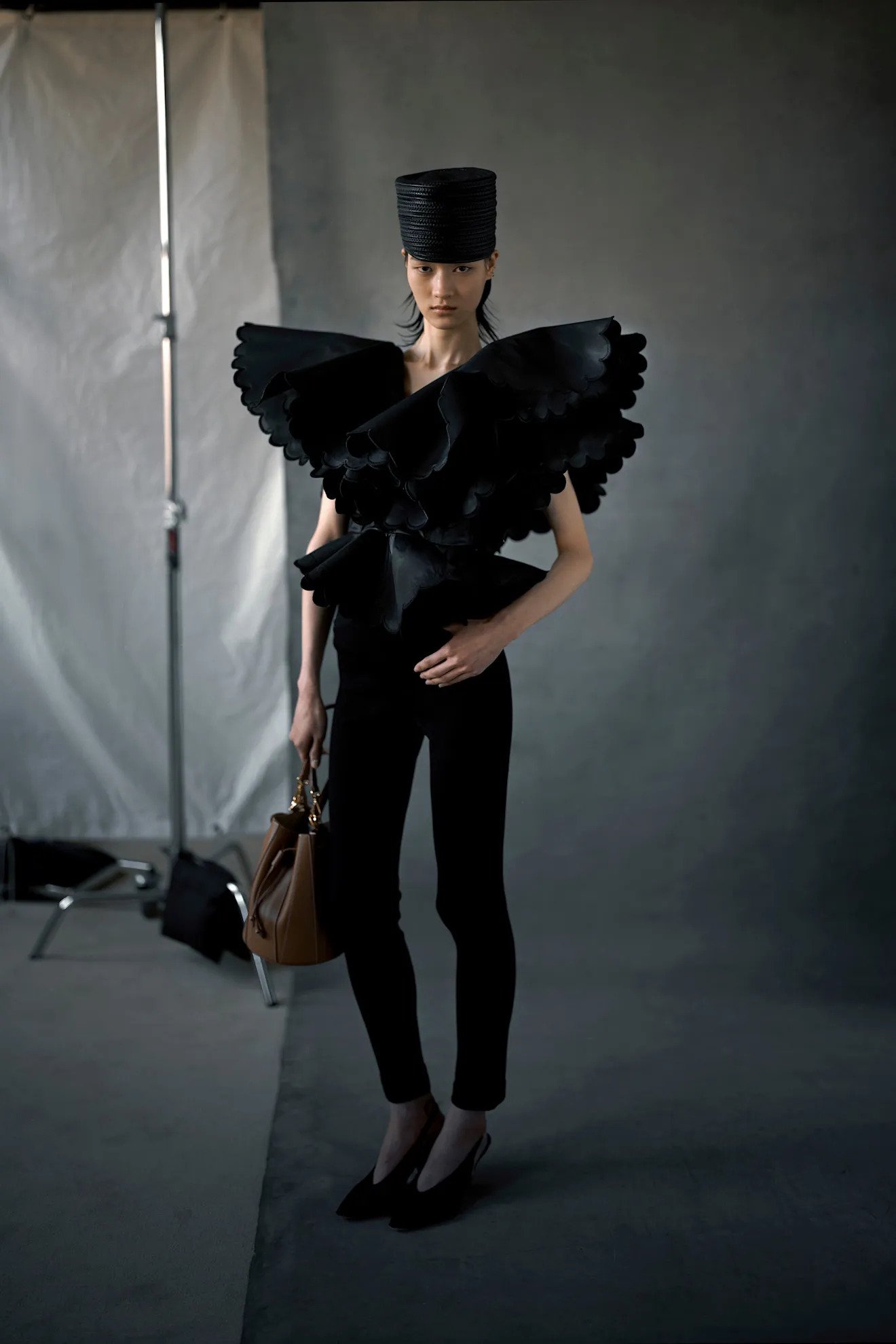 Marni thổi vào cigarette pants tinh thần nghệ thuật thị giác: quần đen ôm sát đi cùng blazer trắng và những đôi giày bệt bóng loáng, vừa formal vừa phảng phất tính châm biếm của Francesco Risso. Boss lại chọn hướng business chic mềm mại hơn: quần navy rủ phối với sơ mi satin và cardigan len dài, điểm xuyết bằng sandals dây mảnh trắng, đưa hình ảnh “nữ doanh nhân” vào không gian nhẹ nhàng như resort. Trong khi đó, Altuzarra biến cigarette pants thành nền cho kịch tính couture: quần đen ôm sát ghép cùng top ruffle điêu khắc và mũ hộp cổ điển, một silhouette mạnh mẽ, sân khấu nhưng vẫn rất ready-to-wear.