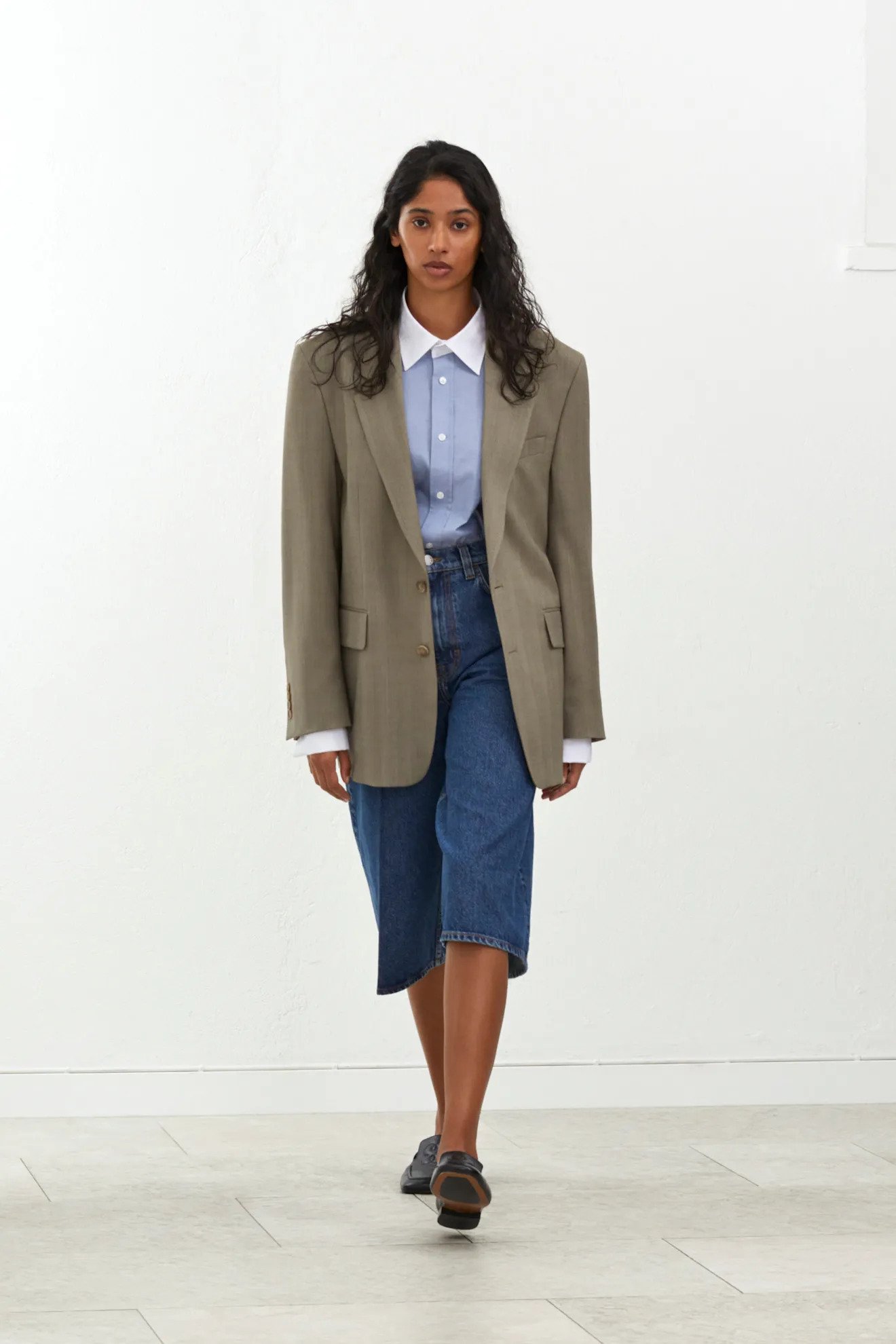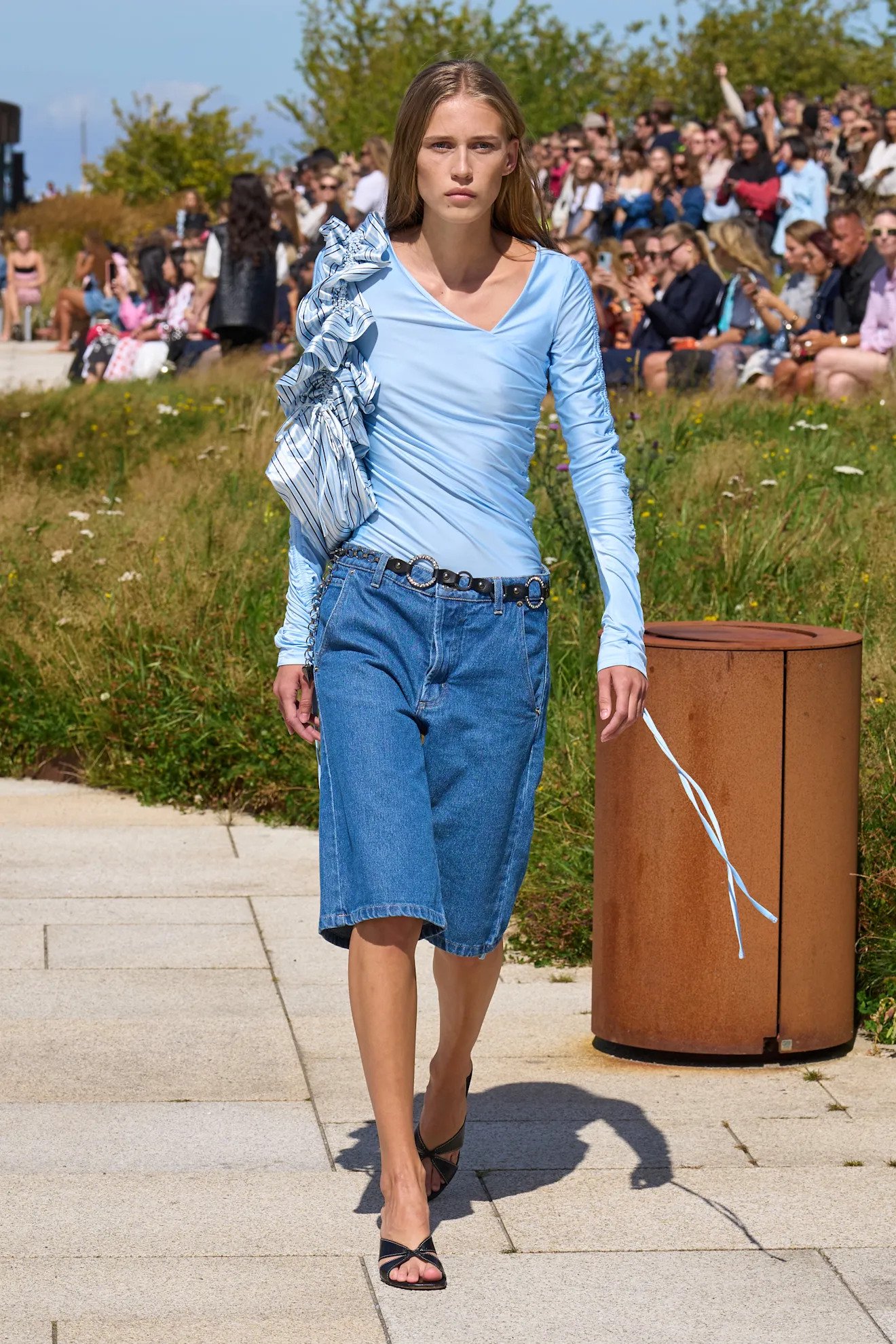Nếu có một món đồ từng bị chế giễu là “quần bố già”, thì đó là jorts – quần shorts jean dài đến đầu gối. Nhưng thời trang không có kẻ thù lâu dài. Ở vòng quay của xu hướng, jorts đang trở lại như một tuyên ngôn anti-fashion đúng lúc. Louis Vuitton, Givenchy và Fendi từng khai phá dáng quần này từ Xuân Hè 2023; nối tiếp là Valentino, Dries Van Noten và Coperni. Sang Xuân Hè 2025, jorts chính thức trở thành key denim trend, lan rộng cả tại Copenhagen Fashion Week với Skall Studio, Opéra Sport và Filippa K cùng góp tiếng nói. Từ biểu tượng lỗi thời, jorts đã chuyển mình thành item thời thượng, vừa giữ được sự đời thường của denim, vừa sở hữu phom dáng thanh nhã để bước vào dòng chảy high fashion.