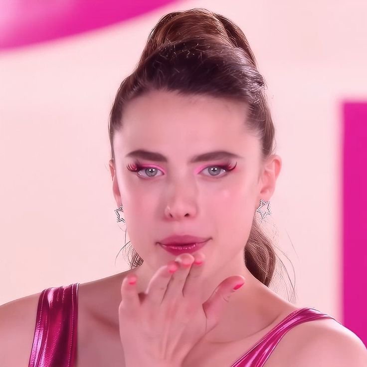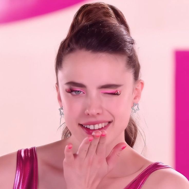Mái tóc vàng óng ả của Barbarella luôn được uốn phồng và tạo kiểu retro đặc trưng của những năm 1960. Bên cạnh đó, makeup nhấn vào mắt khói bạc và môi nude bóng nhẹ đã tái hiện vẻ quyến rũ bất cần, táo bạo và mang tính biểu tượng của Jane Fonda trong Barbarella (1968).