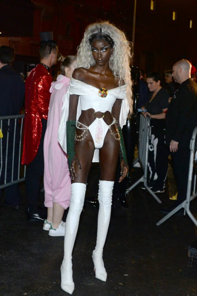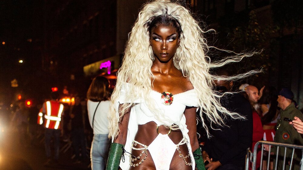 Để hoá thân thành Storm, bạn có thể lựa chọn bộ bodysuit toàn thân như bản gốc, hoặc thử sức với phiên bản cut-out táo bạo lấy cảm hứng từ màn hóa trang ấn tượng của Anok Yai. Đừng quên hoàn thiện tổng thể bằng phụ kiện ánh kim màu vàng - headband, khuyên tai hoặc thắt lưng kim loại.
