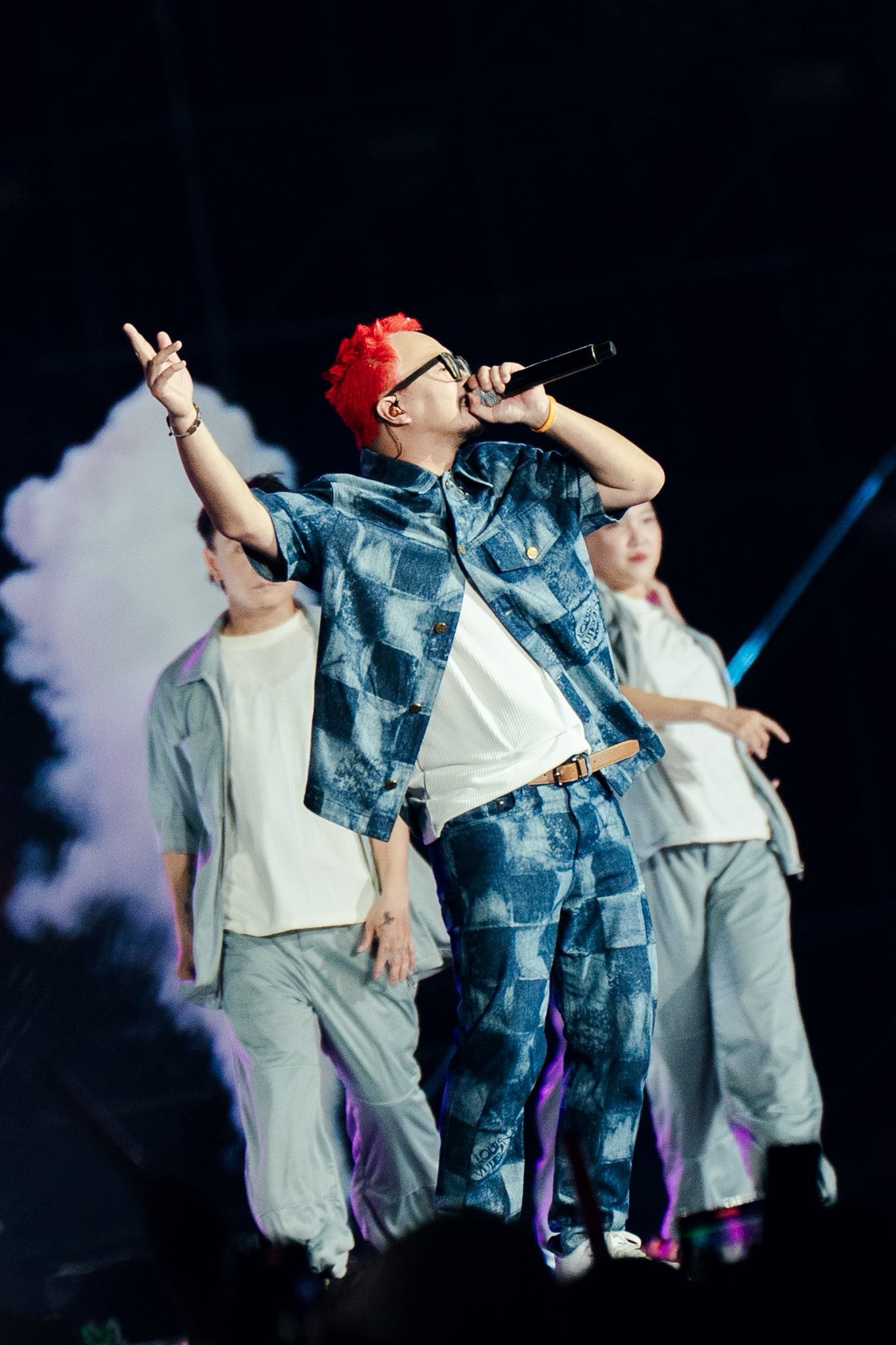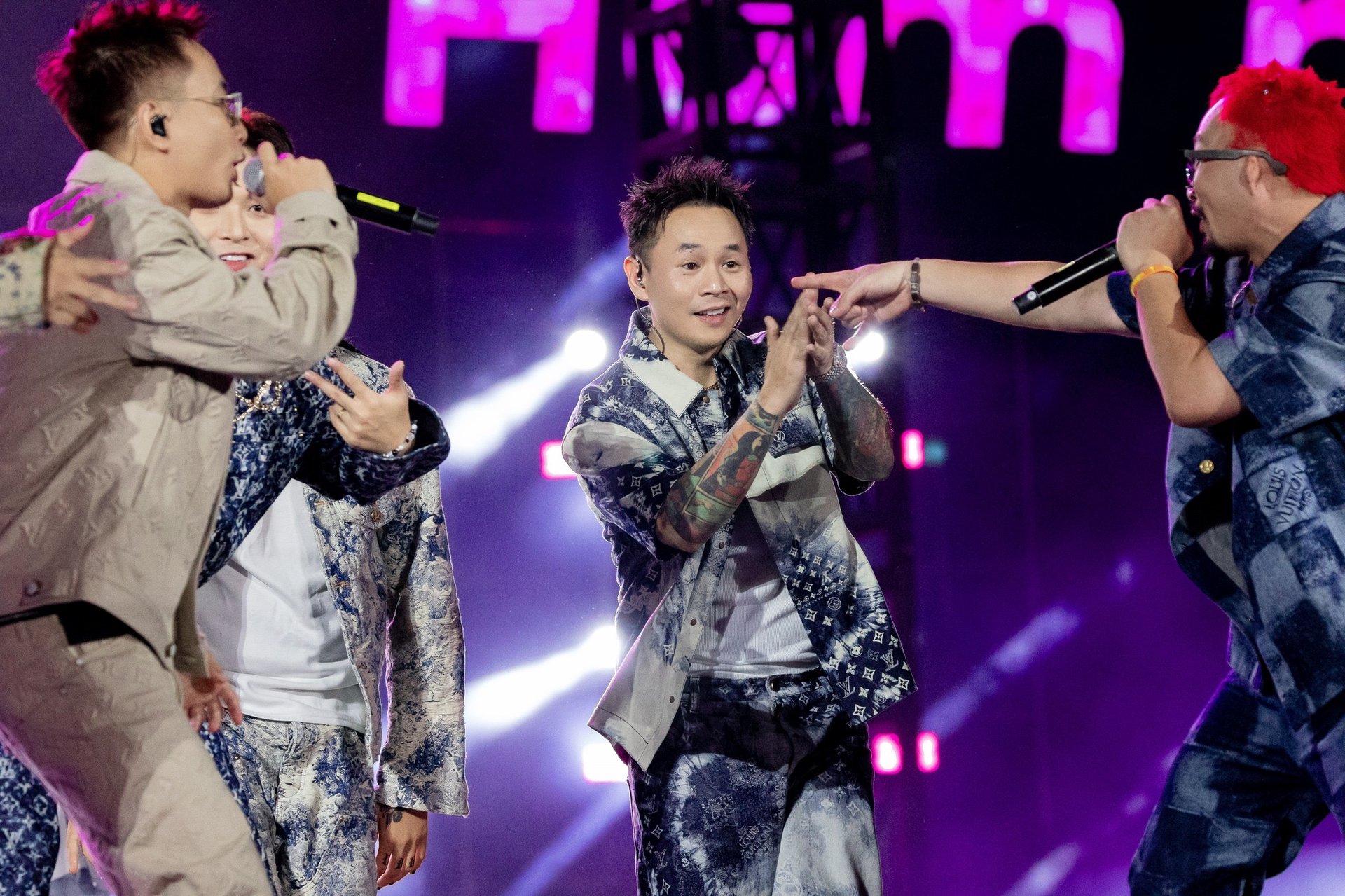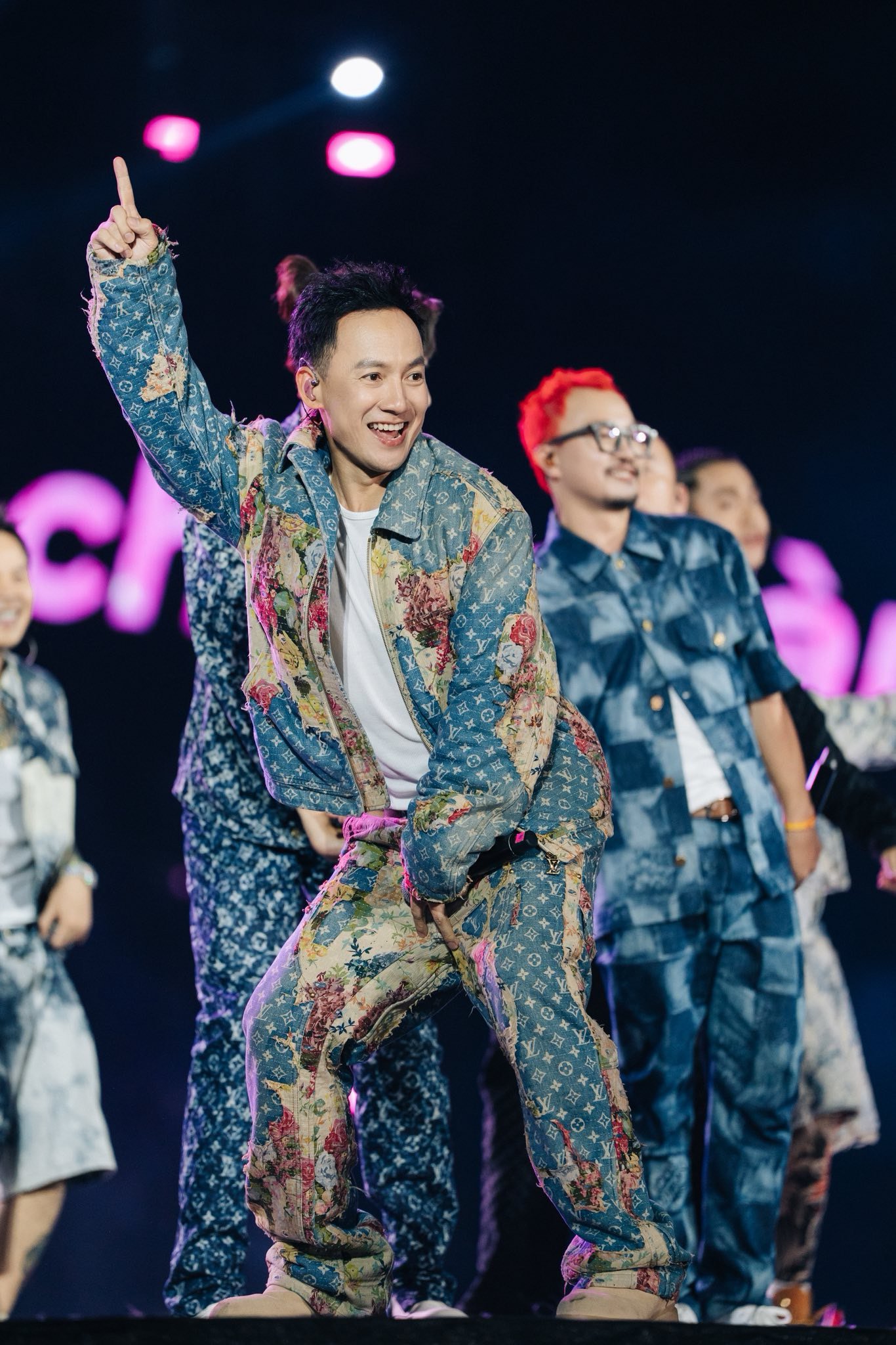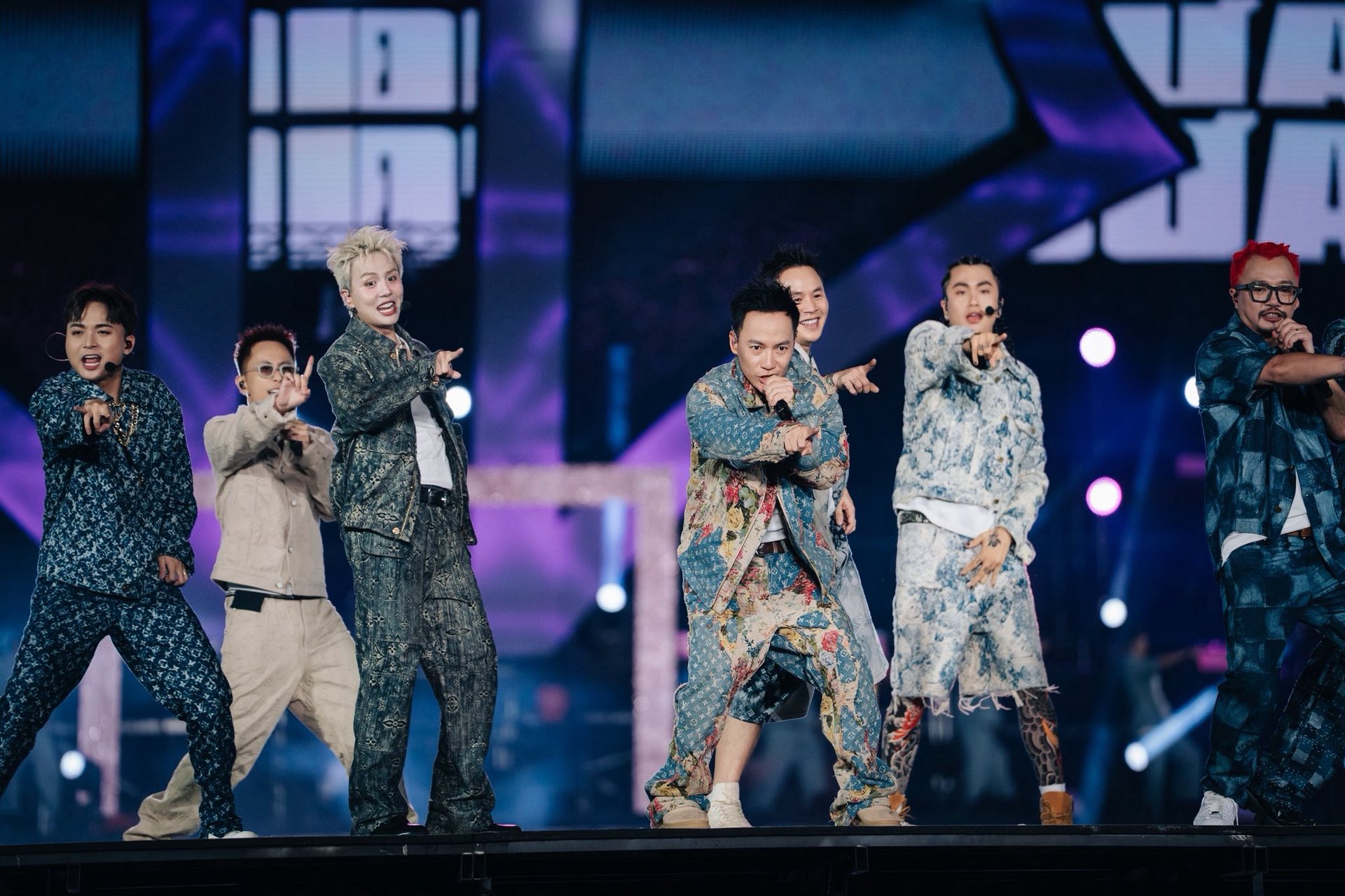 Quốc Thiên đầu tư 9 bộ trang phục Louis Vuitton - dấu mốc cho thấy quần áo không chỉ còn là lớp trang sức sân khấu, mà đã trở thành vũ khí trình diễn. Denim jacquard trên Quốc Thiên, cấu trúc loang màu của Binz, hay những lớp chất liệu chồng xếp trên các thành viên khác biến concert thành một runway mở rộng, nơi nghệ sĩ Việt tái hiện tinh thần menswear Louis Vuitton. Ở đó, khái niệm ‘streetwear cao cấp’ – trục tư tưởng chủ đạo của LV những mùa gần đây - được dịch sang bối cảnh Việt Nam bằng ngôn ngữ riêng: vừa giữ kỹ nghệ haute couture, vừa bắt nhịp với hip hop, urban và những thí nghiệm thị giác bứt phá.