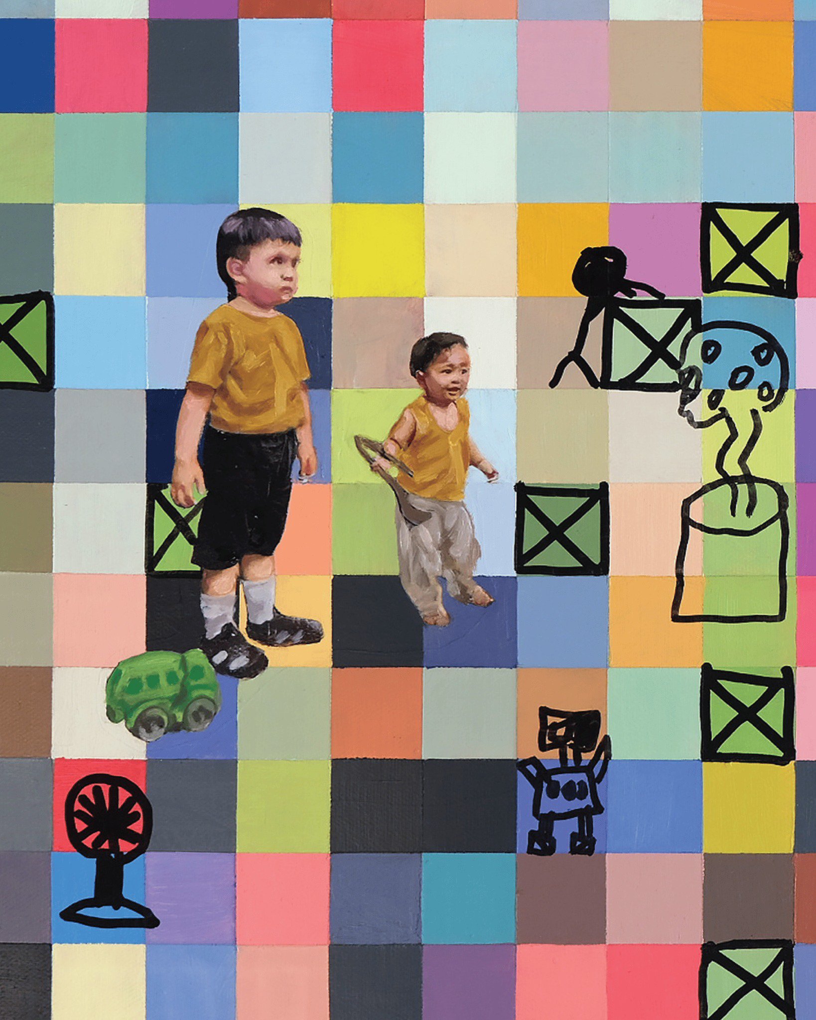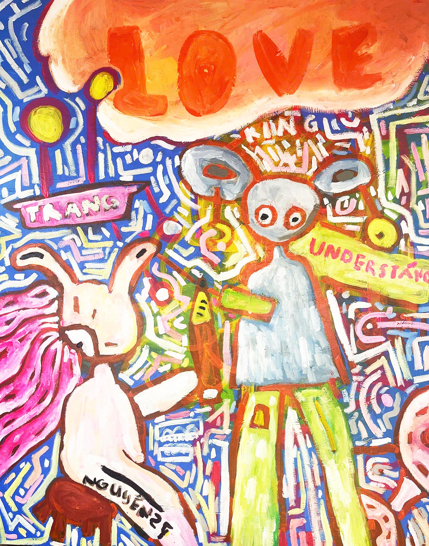 Kết hợp ngôn ngữ Lập Thể với cấu trúc Đồng Hiện, triển lãm phá vỡ dòng chảy tuyến tính của thời gian và không gian, mở ra một bản đồ ký ức và cảm xúc đan xen. Trong sự “xô lệch” ấy, hiện thực hiện lên rõ nét hơn – đa chiều, biến động và chất chứa những nỗi niềm thường bị bỏ quên.