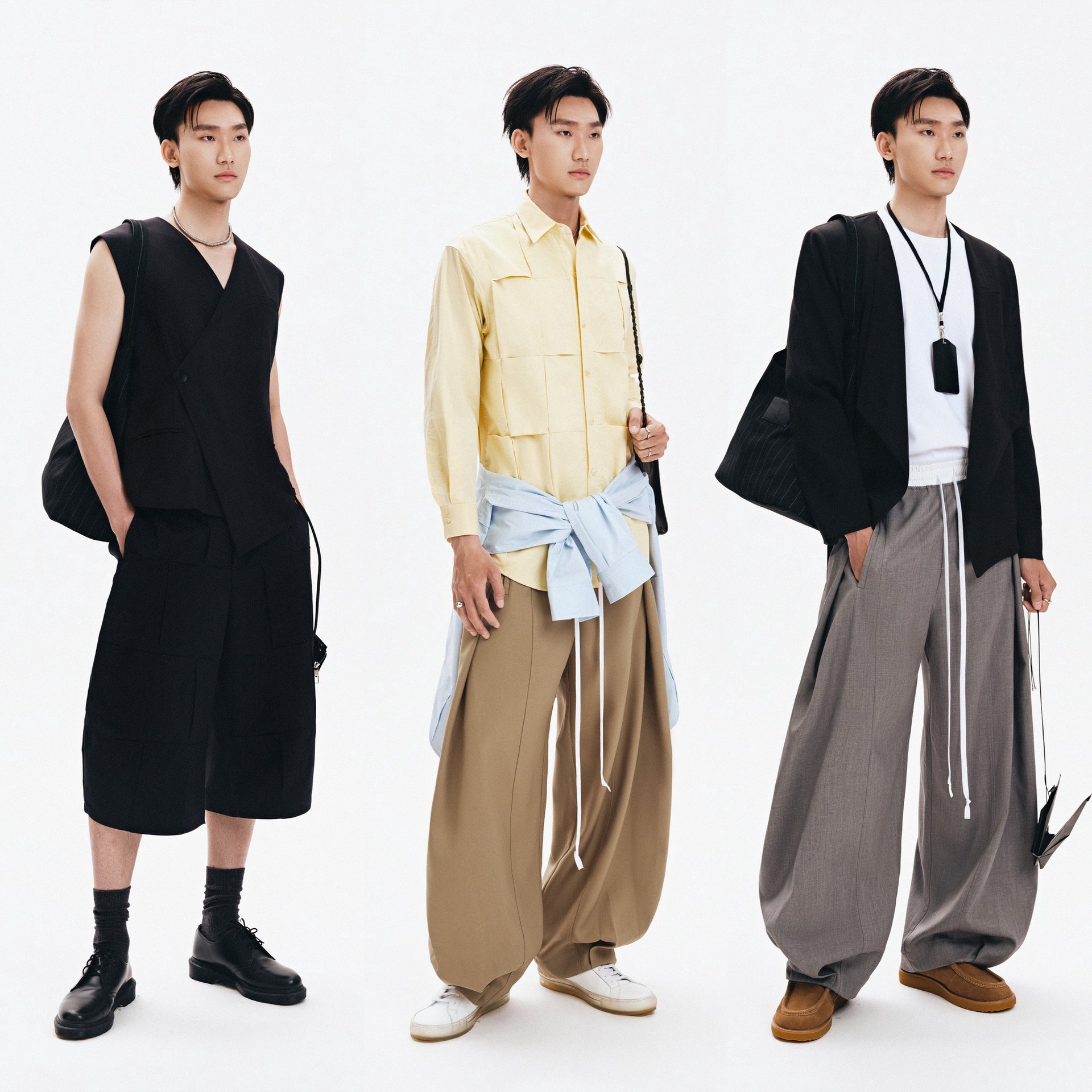 Không đa dạng bằng womenswear, nhưng không thể phủ nhận sự phát triển nổi bật của địa đàng thời trang nam giới hiện nay trong thị trường nội địa. Phá vỡ rào cản - ghì chặt hình tượng nam giới trong áo sơ mi, quần âu, nhiều local brand menswear lẫn womenswear mang đến nhiều cách diễn giải không trùng lặp về tính nam. Vào giữa tháng 6, trời lúc nắng lúc mưa như nội tâm phức tạp của phụ nữ, AIN, GIAN SAIGON, IAM, và Wedooks mang đến những bức chân dung riêng biệt về các chàng thơ của họ.