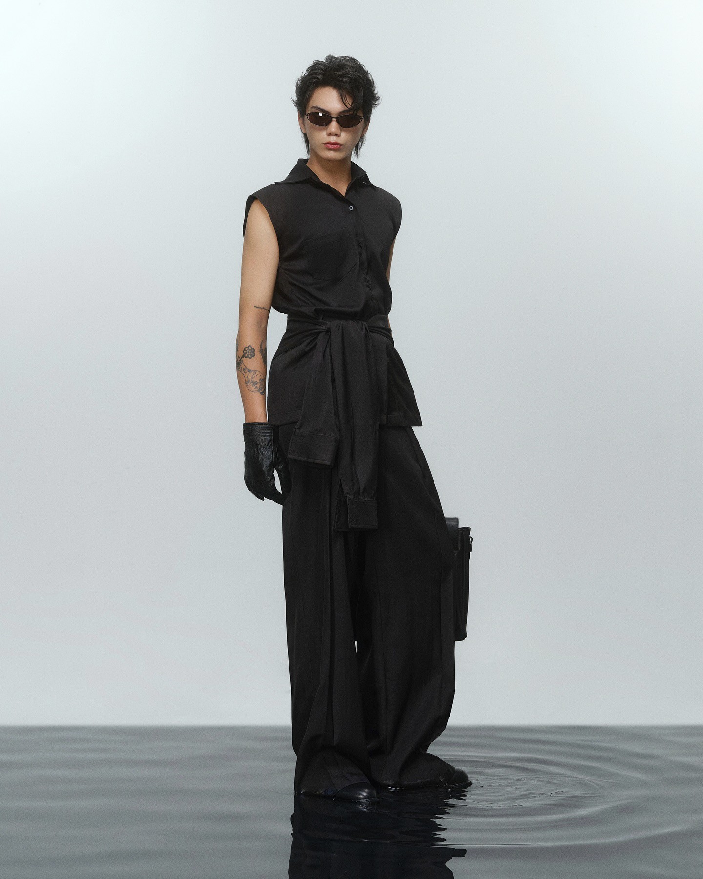 Bộ sưu tập là sự pha trộn của nhiều chất liệu đối lập: satin, chiffon, ren xen kẽ với khaki kỹ thuật và các chi tiết cắt may lạ mắt. Sự chạm nhau giữa bề mặt mịn và thô, trong suốt và đặc khối tạo nên cảm giác mềm mại và mạnh mẽ. Ở đó, mỗi người mặc đều như “được biến hình” – tự do thể hiện phần mạnh mẽ và phần mong manh của riêng mình.