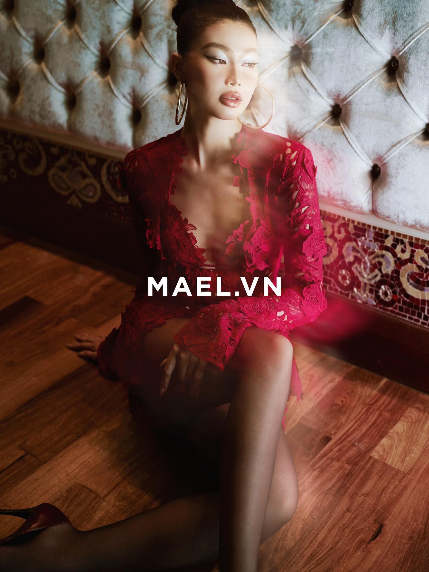Hai bảng màu chủ đạo – đỏ carmine và trắng ngọc trai tượng trưng cho hai thái cực của người phụ nữ MAEL: ngọn lửa của đam mê và ánh sáng của tự do. Giữa chúng là những khoảng mờ gợi cảm, nơi quyền lực không nằm ở việc phơi bày, mà ở khả năng khiến người khác không thể rời mắt.