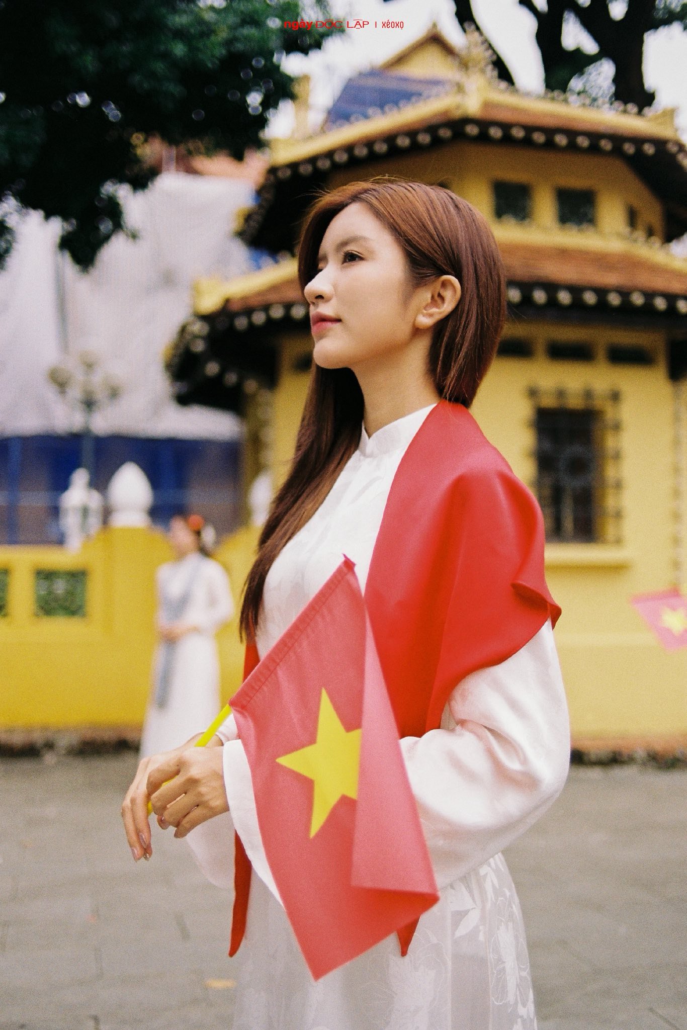 Trong bức tranh hân hoan ngày “Tết Độc Lập”, áo dài trở thành sự kết nối giữa truyền thống và hiện đại, nơi vẻ đẹp mềm mại, nữ tính được khoác lên tinh thần trang nghiêm của đại lễ.