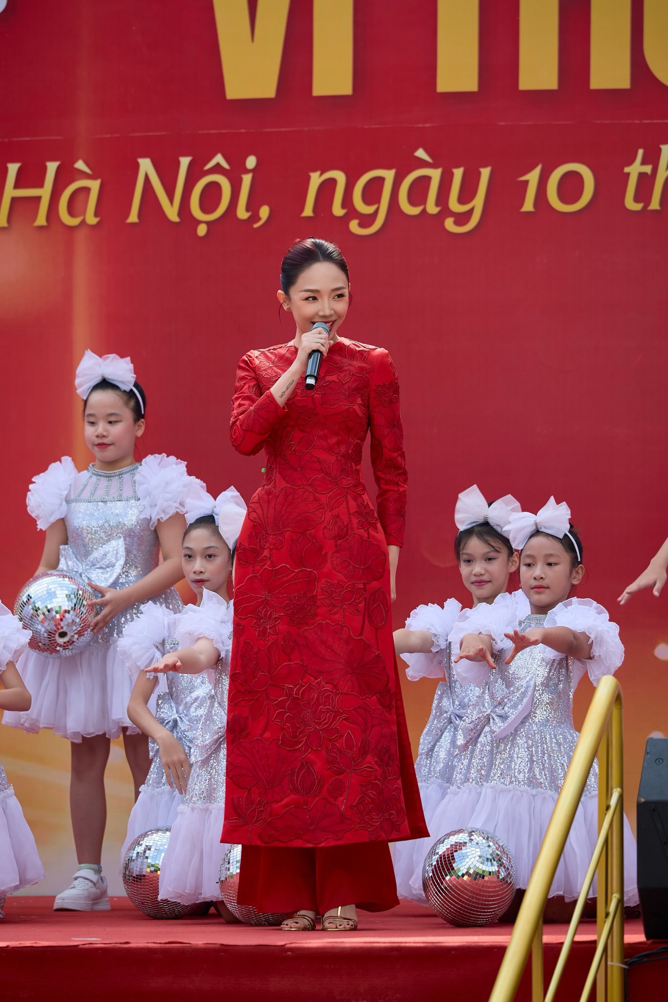 Điều khiến Thủy Design House trở nên khác biệt là sự kiên định với ngôn ngữ dân gian, đồng thời không ngừng tái tạo để phù hợp với tinh thần đương đại. Trên các sân khấu mừng Quốc khánh, những chi tiết vốn quen thuộc – từ bông hoa thêu đến gam đỏ son bỗng trở thành biểu tượng tập thể. Thời trang, lúc này, đã góp phần làm dày thêm cảm xúc cho ngày lễ quốc gia.
