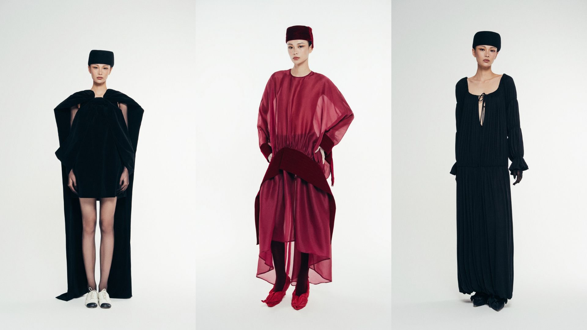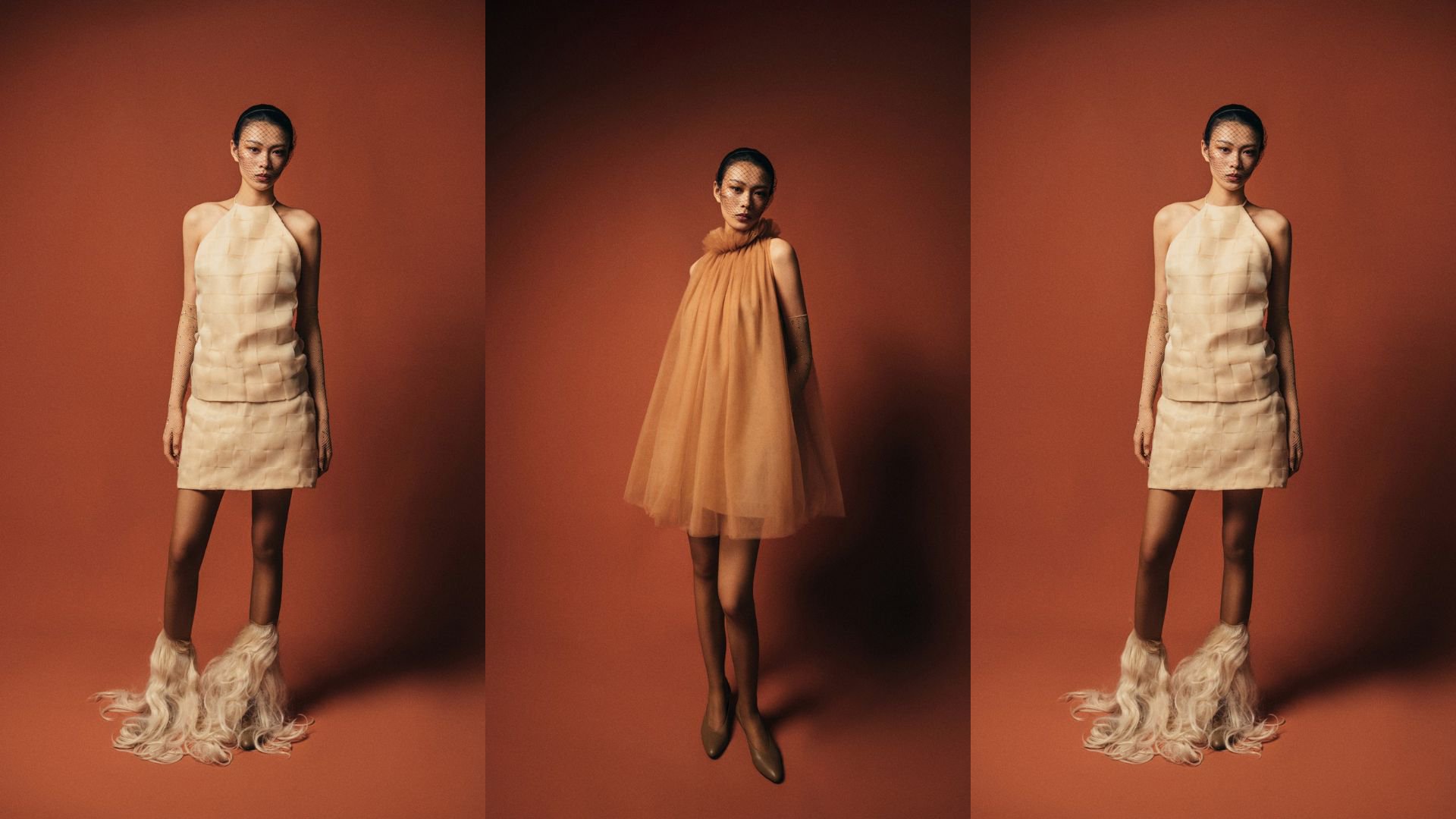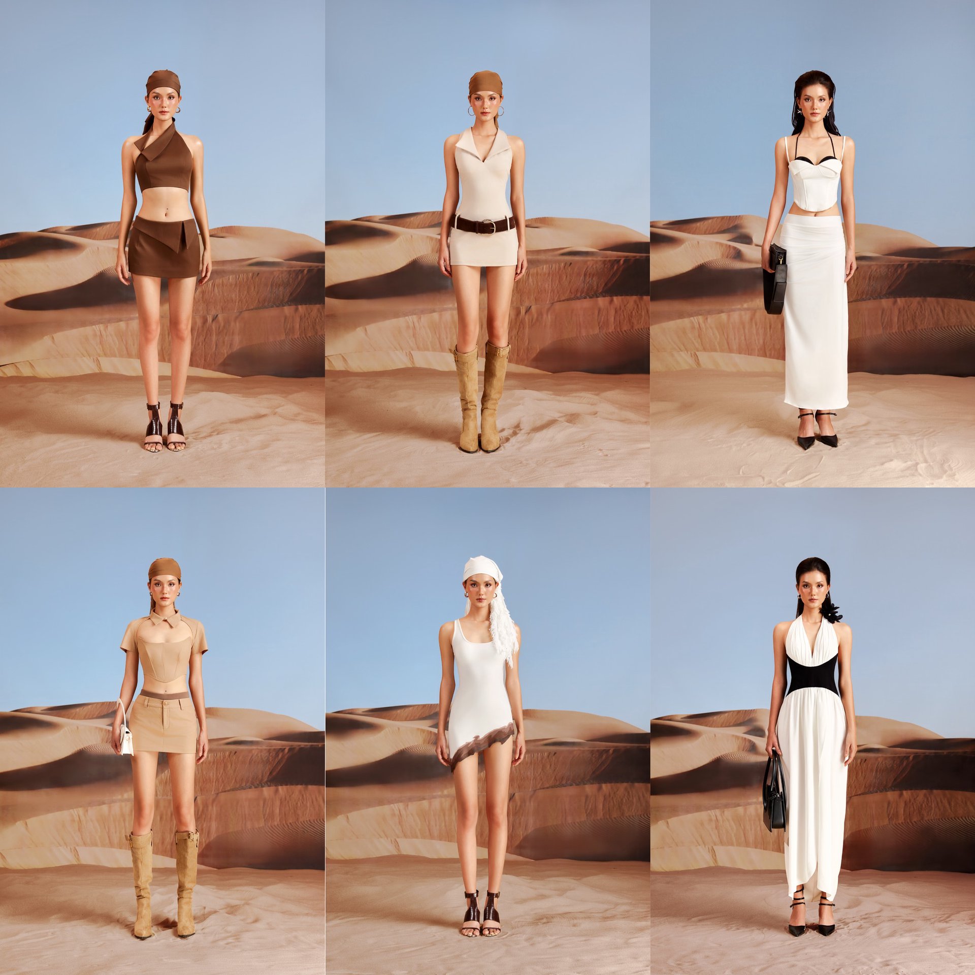 Phom dáng phóng khoáng, đường cắt tinh giản – tất cả nhằm tôn vinh người phụ nữ trong phiên bản chân thực nhất của chính họ. Ba chương kết nối liền mạch qua hiệu ứng ombre màu đồi cát – tạo nên một hành trình cảm xúc thống nhất, không thể tách rời.