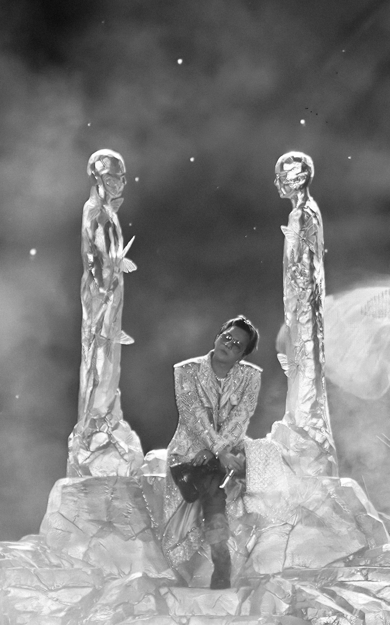 Vẫn là những cử chỉ quen thuộc, những động tác tưởng như vô thức: đứng yên nhìn vào camera LED, giơ tay để ánh đèn sân khấu phản chiếu lên chiếc nhẫn bạc, xoay người chậm rãi để mái tóc ướt rũ xuống che trán. Mỗi chi tiết là một frame hình thời trang. Mỗi chuyển động là một sự tính toán trong ngôn ngữ hình ảnh.