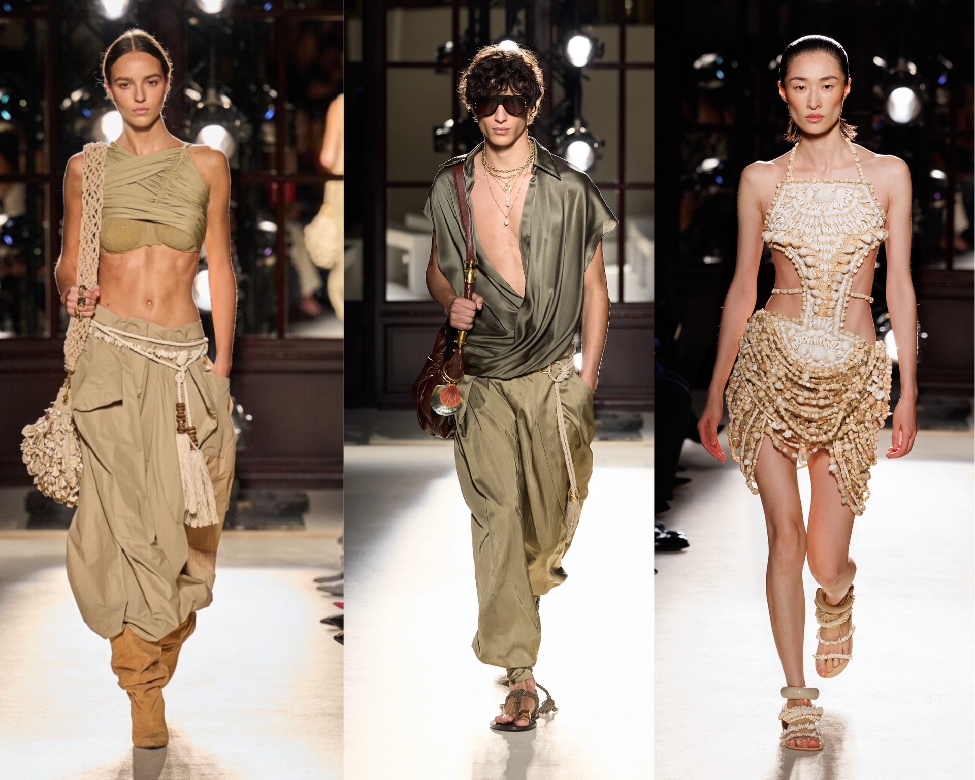 Blumarine và Dilara Findikoglu chọn tái hiện phong cách hải tặc trong các bộ sưu tập mới nhất của mình bằng những thiết kế váy áo xếp bèo và corset được trang trí bằng xích và thánh giá, mang đậm tinh thần nổi loạn và gợi cảm. Trong khi đó, Etro khám phá thế giới hải tặc qua các chi tiết bùa hộ mệnh (amulet) và mũ miện dạng lưới, như đưa người xem đắm mình vào thế giới biển cả và những nàng tiên cá thần thoại.