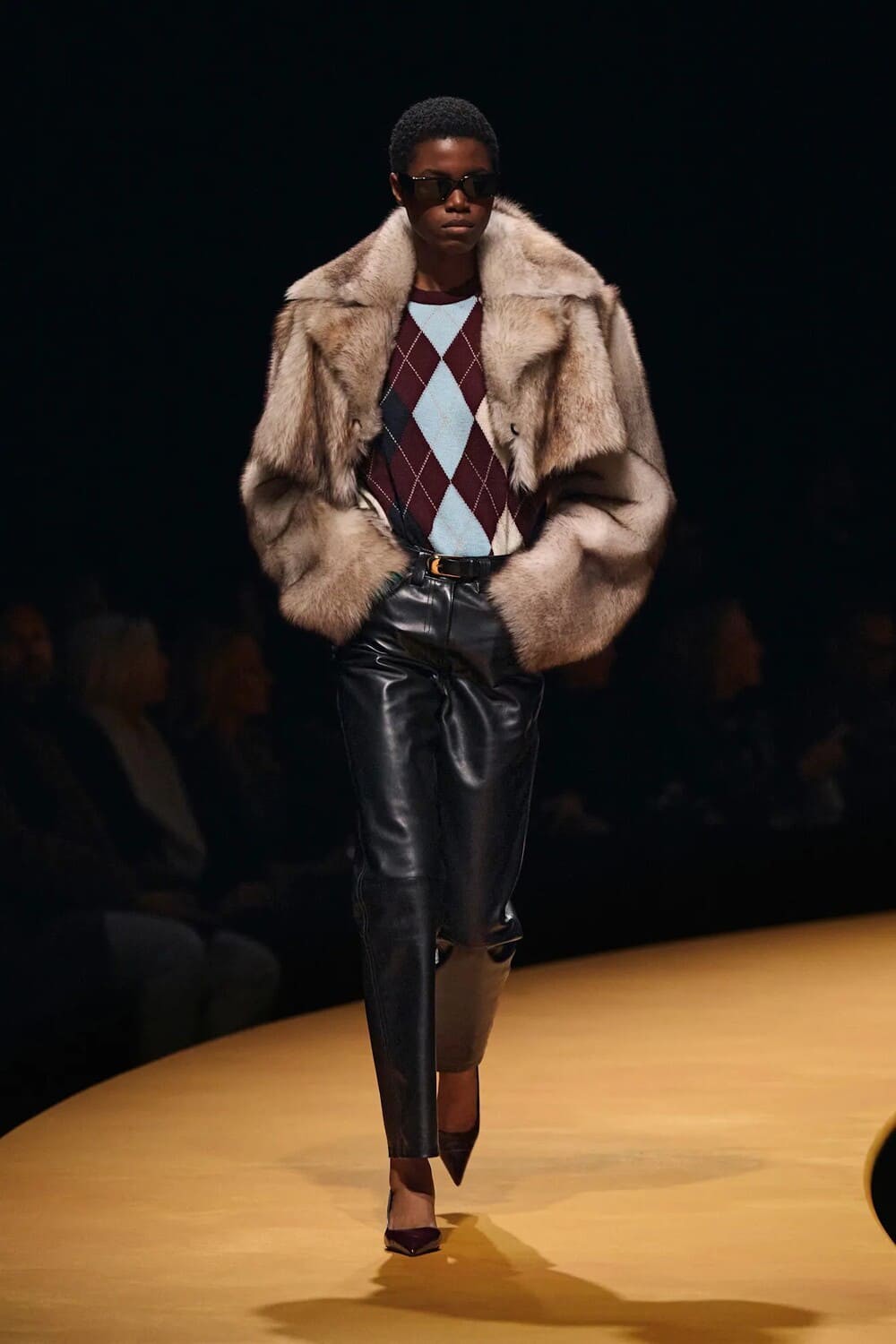 Cảm giác tương phản luôn hấp dẫn trong thời trang. Argyle len mềm mại khi đi cùng da hoặc lông thú sẽ khiến người mặc nổi bật ngay lập tức. Áo khoác biker da đen hoặc quần da ống suông phối cùng áo len argyle là lựa chọn táo bạo cho những ai thích pha chút nổi loạn. Nếu muốn sang trọng, hãy chọn vest len phối với gile lông mịn – vừa giữ ấm, vừa tôn dáng.