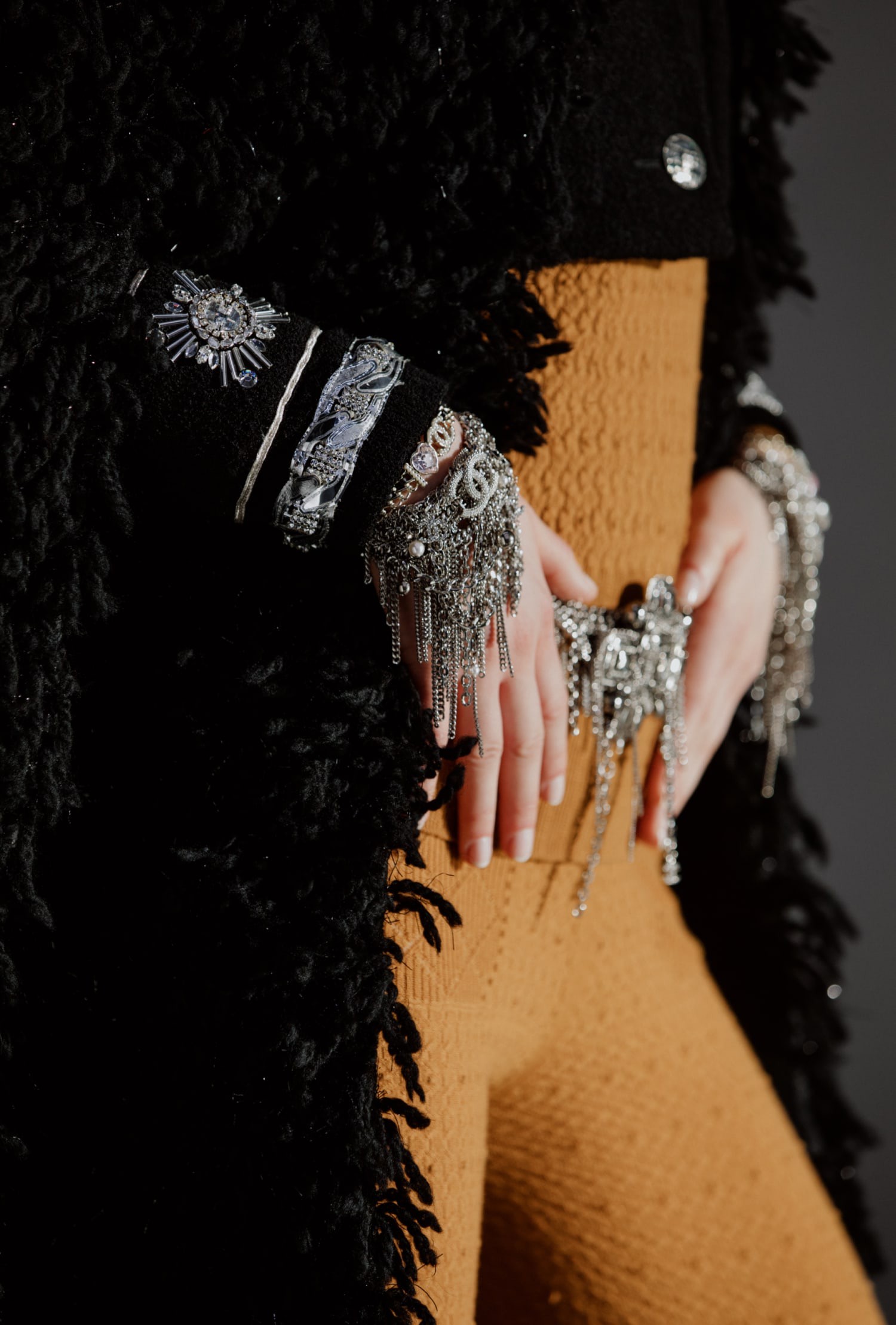 Sự khác biệt của Lesage nằm ở khả năng tái định nghĩa tweed – chất liệu vốn gắn chặt với CHANEL bằng cách ghép len, lurex, sợi kim loại, dải băng lụa và thậm chí những vật liệu phi truyền thống khác để tạo ra bề mặt vải có cấu trúc đa tầng.