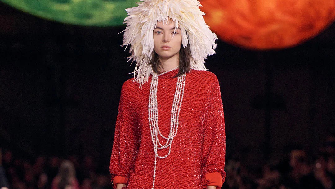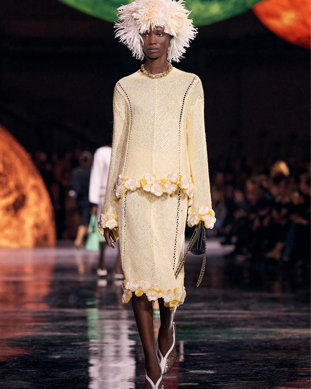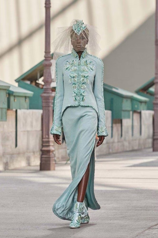 Show diễn lần này đồng thời mang dấu ấn của Le 19M – mái nhà chung của các Maison thủ công: từ những đường thêu tinh vi của Lesage và Montex, những cánh hoa vải của Lemarié, đến nghệ thuật làm mũ, làm giày, chế tác kim loại và chất liệu.