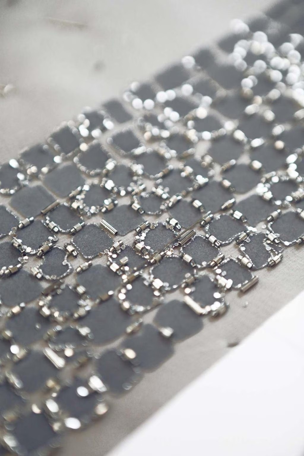 Những mô-típ gợi nhắc ký ức đô thị New York hay các chi tiết kết cấu bê tông, mặt đường, biển hiệu, hoàn toàn có thể được “dịch” sang ngôn ngữ thêu của Montex dưới dạng những lớp texture đa chiều. Ở đó, đường kim gợi tả sắc xám kim loại như tiếng tàu điện chạy qua Manhattan; những dải sequin dài như vệt đèn trong sương; hay những chuỗi cườm xếp lớp tạo cảm giác rung nhẹ như hơi nóng bốc lên từ mặt đường ngày Hè.