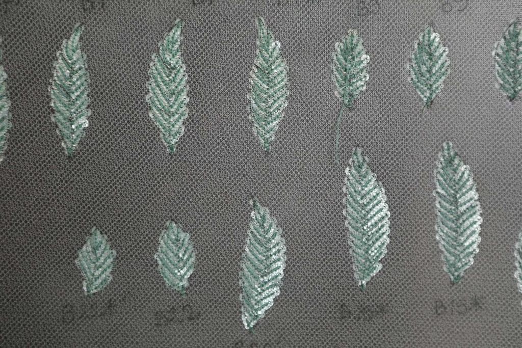 Xen vào đó là sự liều lĩnh đậm ngôn ngữ đương đại: sequin hình học, mảnh kim loại nhỏ, sợi công nghiệp trong suốt – tất cả được phối hợp để tạo thành những bề mặt thêu có cấu trúc, gồ ghề, phản xạ ánh sáng theo cách liên tục thay đổi khi người mẫu bước đi.