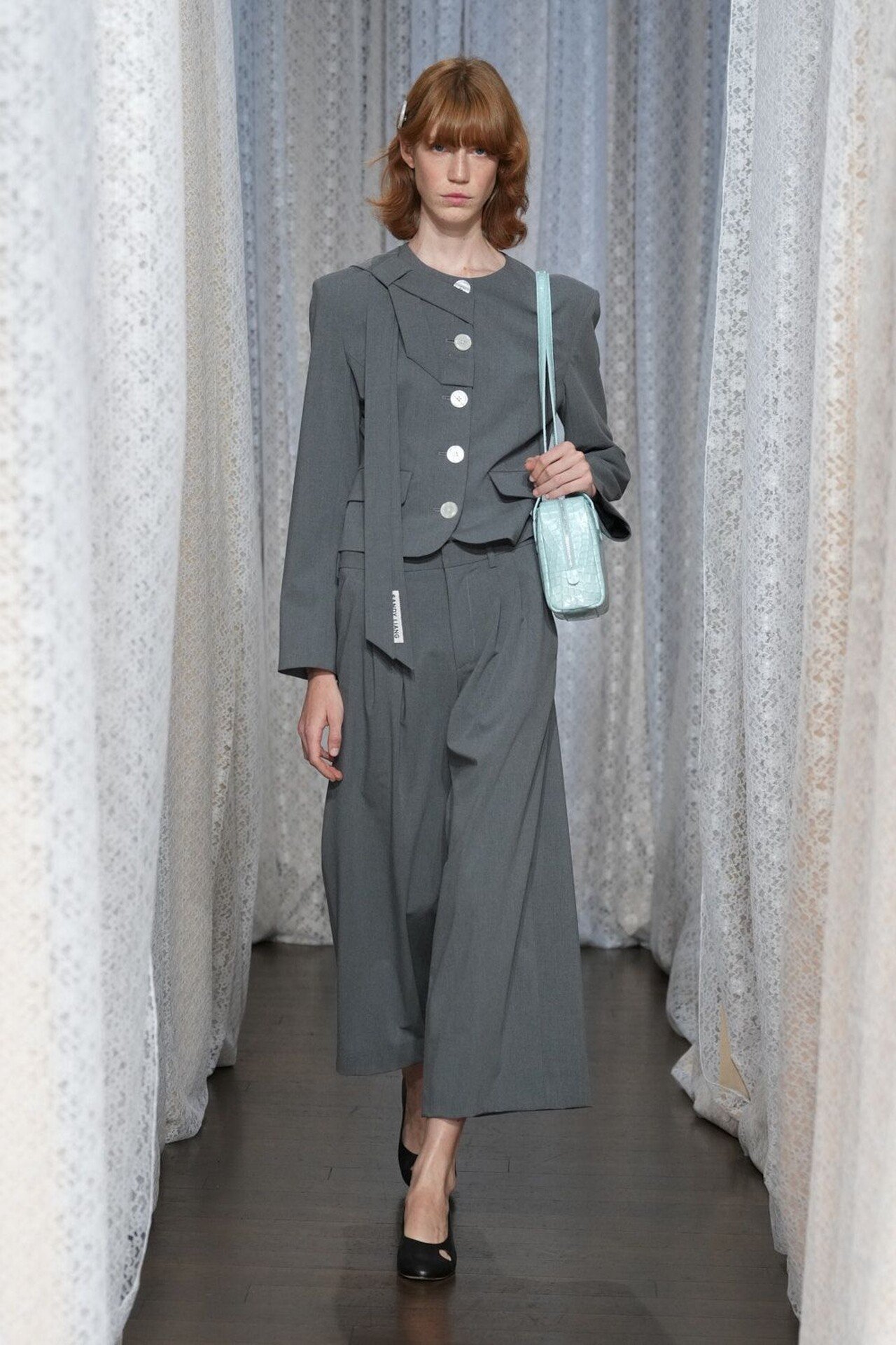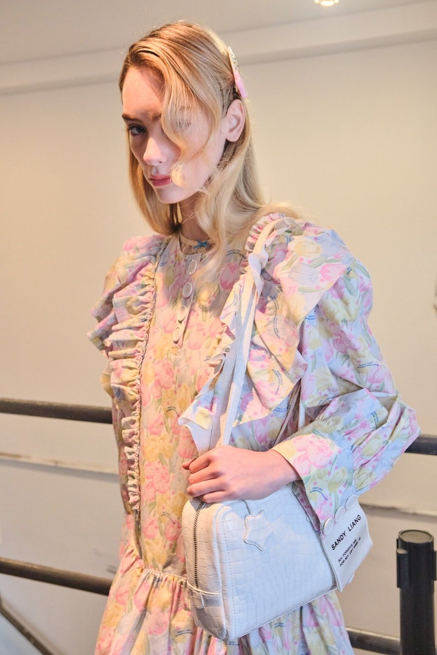 Tuổi thơ gắn bó với Chinatown đã để lại trong tâm trí Sandy Liang những ký ức sống động về dáng hình thong dong của các bà cụ trên phố. Họ diện váy hoa rực rỡ, đi dép xăng đan, khoác thêm áo chống nắng chẳng ăn nhập. Hình ảnh ấy từng bước vào bộ sưu tập tốt nghiệp của cô, và nay tiếp tục được tái hiện, nhưng dưới một lăng kính hoàn toàn mới.