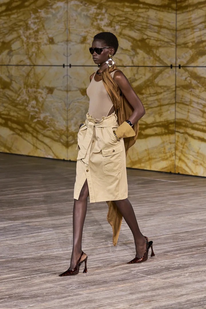 Trong bối cảnh thời trang mùa lạnh đang trở nên đa tầng. Nó làm mềm lại cấu trúc của những chiếc áo blazer mạnh mẽ, làm nhẹ sự nghiêm túc của bộ suit đơn sắc và làm thanh thoát hơn những chiếc váy len dài. Với chỉ một chuyển động nhẹ, chiếc khăn mảnh đã tạo ra cách người nhìn cảm nhận dáng vóc: cổ cao hơn, phần thân trên cân đối hơn, tổng thể thanh thoát hơn.
