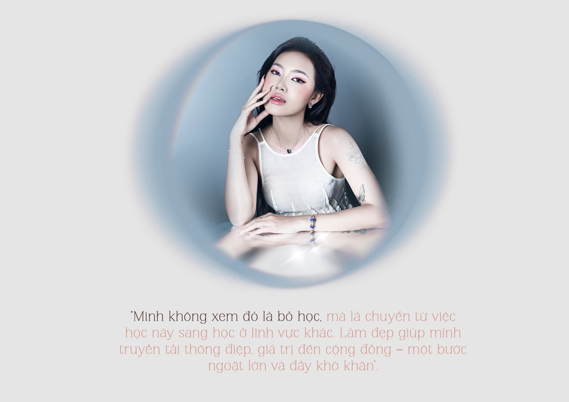 Từ giảng đường Kiến trúc, Thư quyết định rẽ hướng để theo đuổi đam mê làm đẹp. Không gọi đó là “bỏ học”, cô tự xem mình chỉ đang chuyển lớp: từ bản vẽ kiến trúc sang bảng màu của phấn mắt, từ đường nét không gian sang đường nét trên gương mặt.