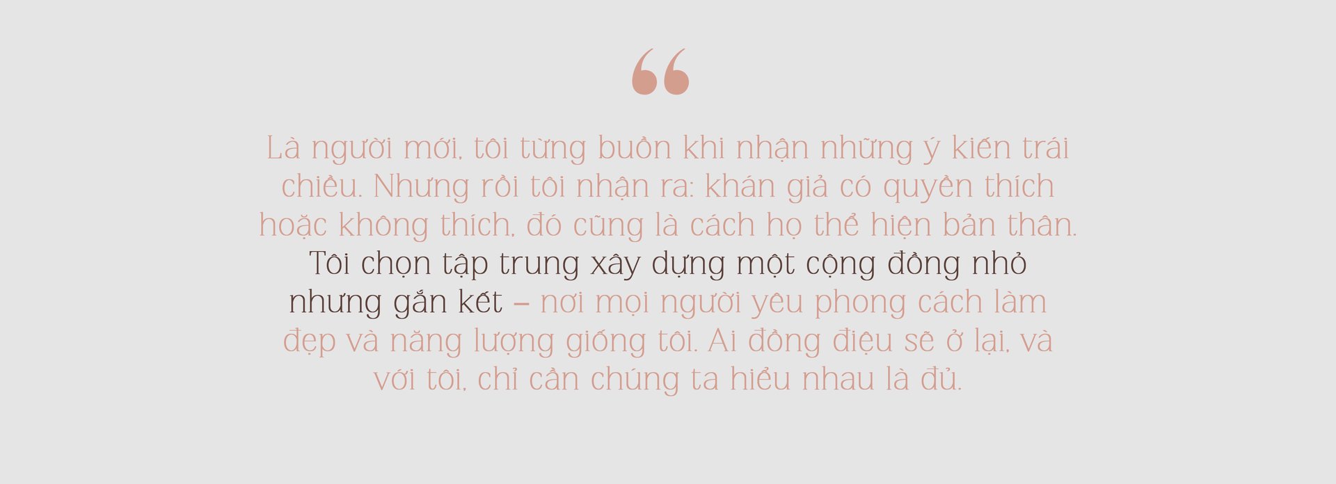 Những ngày đầu chia sẻ trên mạng xã hội, Uyên không chủ đích chọn beauty làm trung tâm. Từ những câu chuyện đời thường, beauty tự nhiên len vào như một phần tất yếu. Duyên đưa đẩy, Uyên có cơ hội nói nhiều hơn về cách mình yêu thương bản thân, chăm sóc làn da, trang điểm, và từ đó, làm việc cùng các nhãn hàng. Tự nhận chỉ là “một người bình thường”, Uyên bước vào mạng xã hội bằng những điều giản dị: vài lời tâm sự vu vơ, một chuyến đi, hay niềm vui nhỏ khi chăm chút ngôi nhà. Ẩn dưới sự giản dị ấy lại là tinh thần lạc quan, sức sống nội tâm và niềm tin bền bỉ vào hành trình riêng của mình.