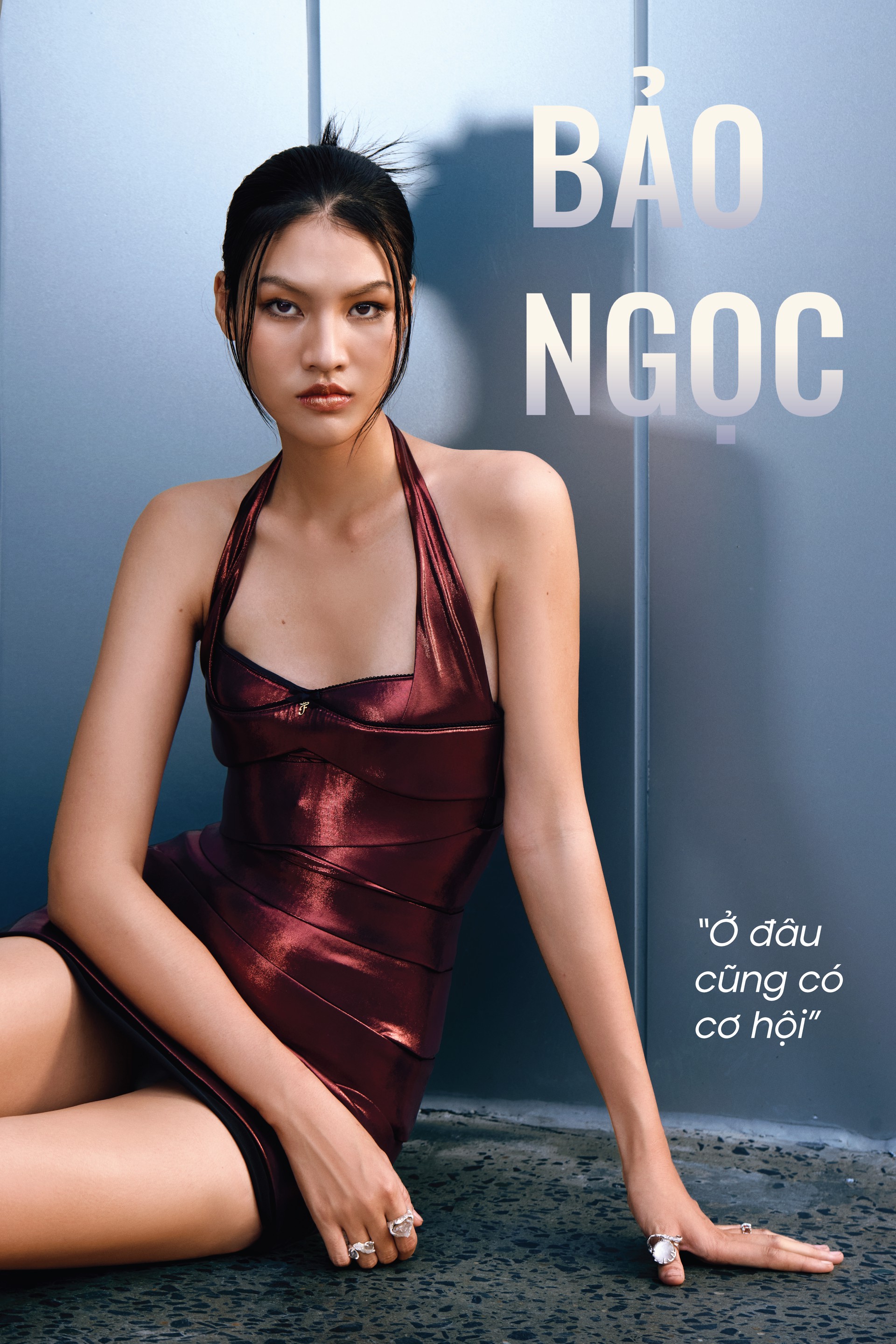Bảo Ngọc là ví dụ đẹp cho chữ “duyên” trong nghề mẫu. Khi còn học lớp 12, cô tình cờ nhìn thấy bài đăng casting của NTK Nguyễn Minh Công. Gửi một vài tấm hình bản thân giản dị trong tà áo dài để thử sức chứ không casting offline. Vài ngày sau, thông báo đậu show đến. Đó là lần đầu tiên cô bước vào hậu trường một buổi diễn chuyên nghiệp và cũng là khoảnh khắc Ngọc hiểu mình thuộc về thế giới này. Từ cơ duyên ấy, cô quyết định gắn bó với nghề mẫu.