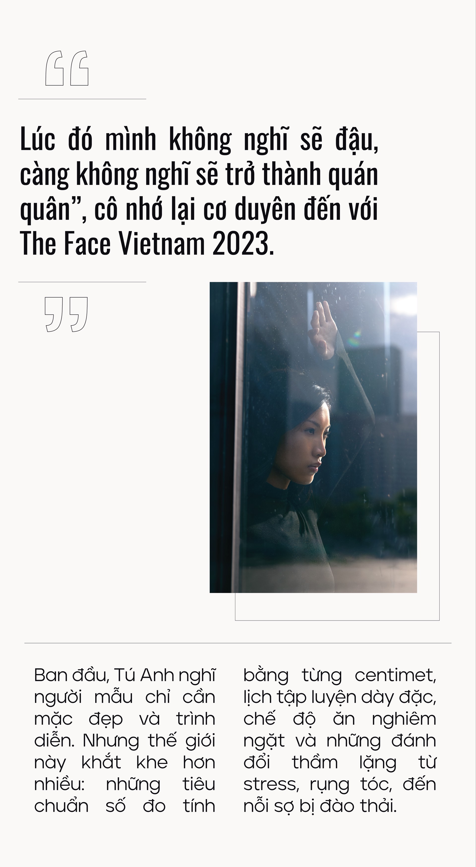 Trước khi có một Tú Anh quán quân, một Tú Anh sải bước trong show của nhà mốt xa xỉ bậc nhất, đã có một cô gái từng làm việc tại cửa hàng tiện lợi, rong ruổi khắp phố với xấp tờ rơi trên tay, làm mẫu makeup với mức thù lao 20.000 đồng một giờ.