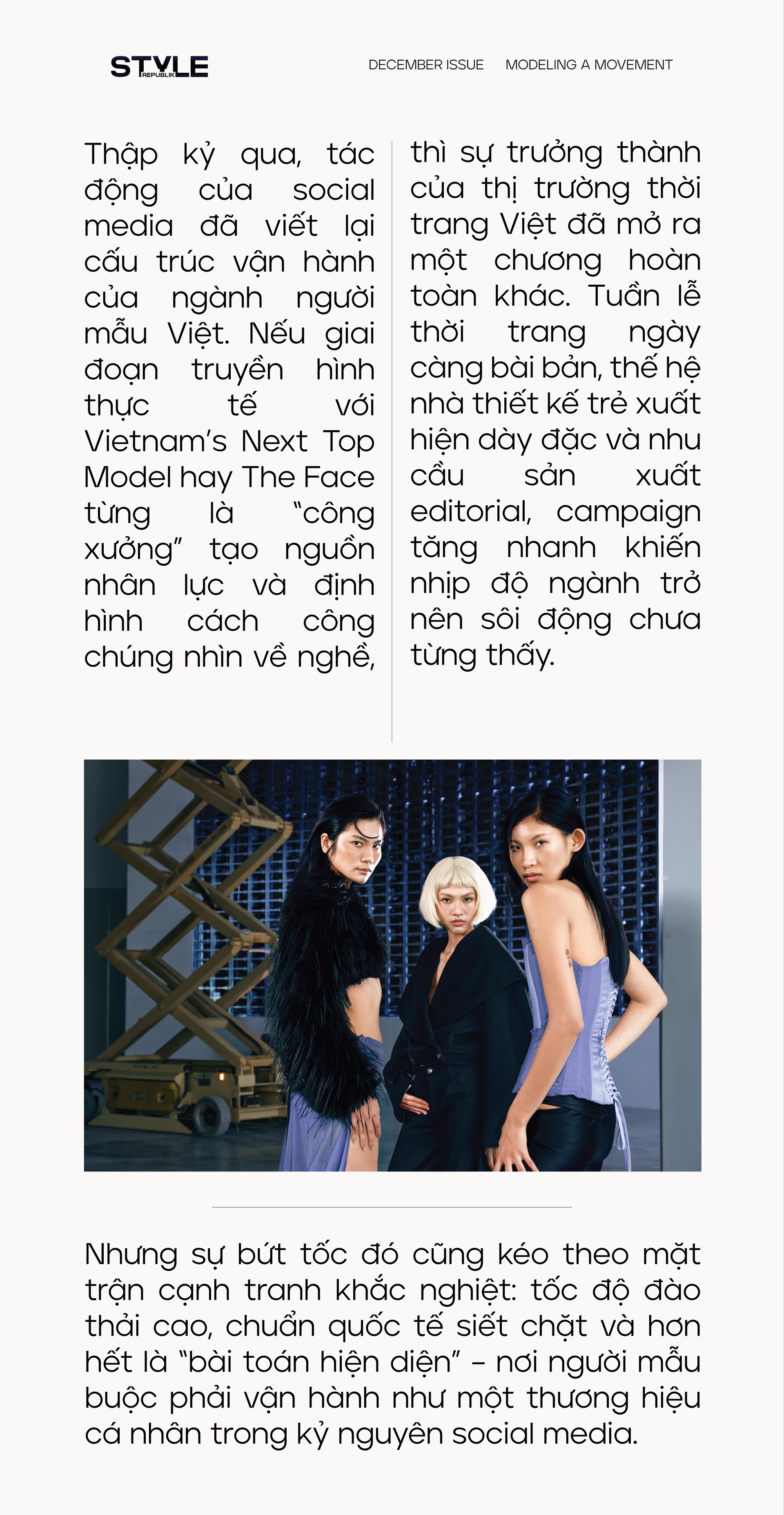 Với thị trường thời trang Việt Nam, Dung nhìn thấy một giai đoạn phát triển mạnh mẽ: local brand phát triển, nhu cầu sáng tạo tăng cao, cơ hội dành cho người mẫu trẻ rộng mở hơn bất kỳ thời điểm nào. Thế nhưng đi kèm đó là áp lực lớn hơn: cạnh tranh không chỉ trong nghề, mà còn với những gương mặt vốn đã có sẵn sức ảnh hưởng trên mạng xã hội.