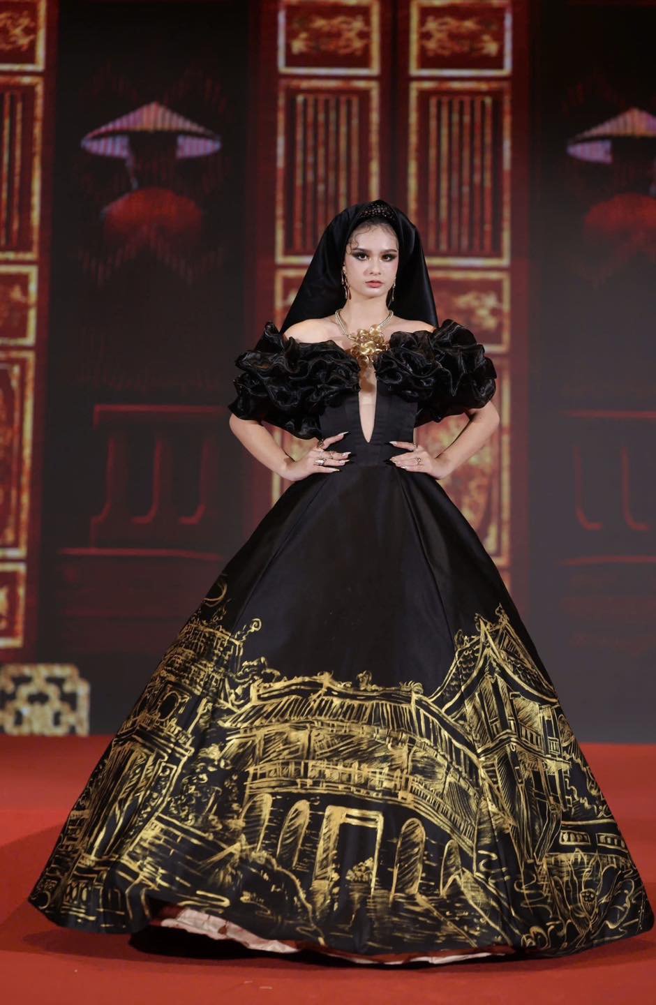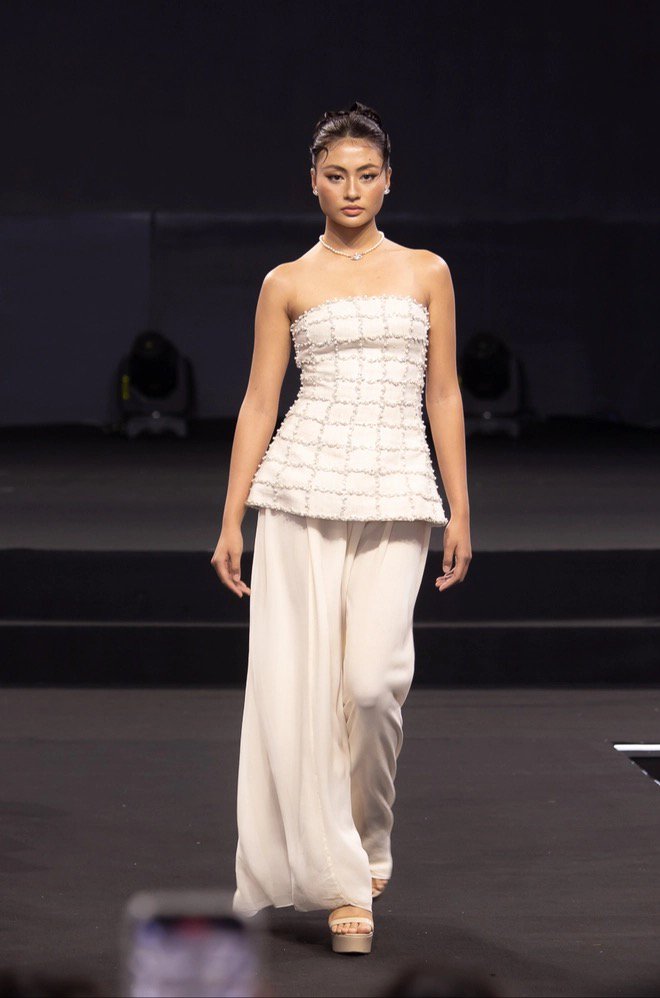 Trên sàn diễn, Kiều Vũ – Mrs Asia International 2024 đảm nhận vai trò vedette, gây chú ý trong thiết kế trắng cùng chiếc nón đội đầu mô phỏng dáng sen, gợi hình ảnh người phụ nữ Việt nền nã. Mở màn show diễn là Luna – Miss Cosmo China 2025, bên cạnh dàn người đẹp quốc tế từ Hồng Kông, Macau, Thượng Hải… góp phần lan tỏa hình ảnh thời trang Việt trên sân khấu quốc tế.