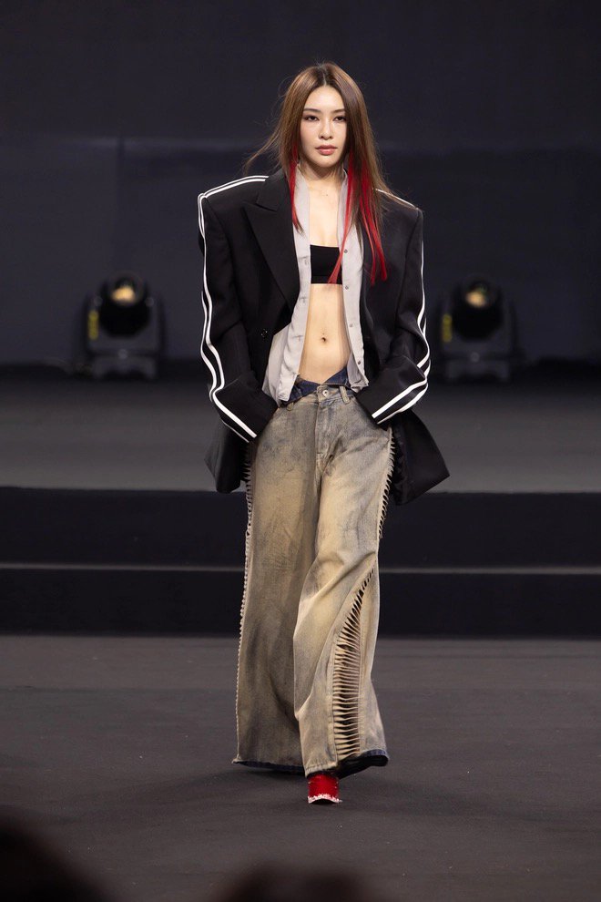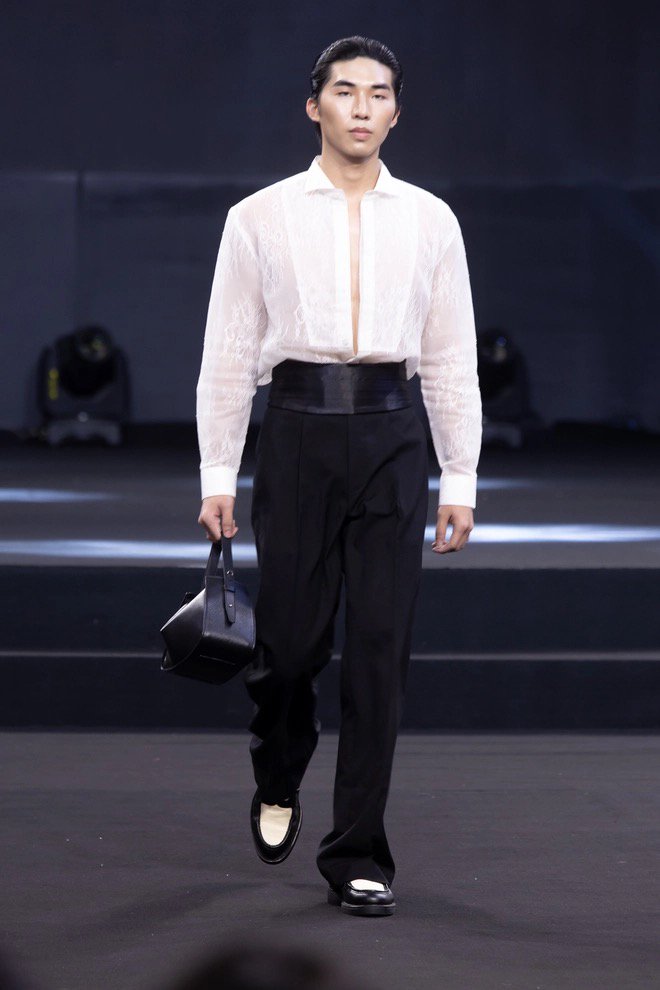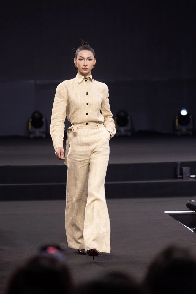 DAS STUDIOS mở đầu bằng những thiết kế menswear thanh lịch, giản lược mà vẫn mạnh mẽ, khắc họa hình ảnh người đàn ông Việt hiện đại, tự tin và tinh tế. Ngược lại, BETONG mang đến năng lượng đường phố mạnh mẽ, gồ ghề và bản lĩnh – nơi thời trang không chỉ là phong cách mà là tuyên ngôn cá tính. Sau đó, Hemp Oi làm chậm nhịp với những thiết kế dệt tay từ gai dầu và lụa truyền thống, như lời nhắc về mối liên kết giữa thời trang, văn hóa và thiên nhiên. Kết màn, JIRENE đem đến sắc thái nữ tính hiện đại, thanh thoát mà quyền lực – sự cân bằng hiếm có giữa ứng dụng và thời thượng.