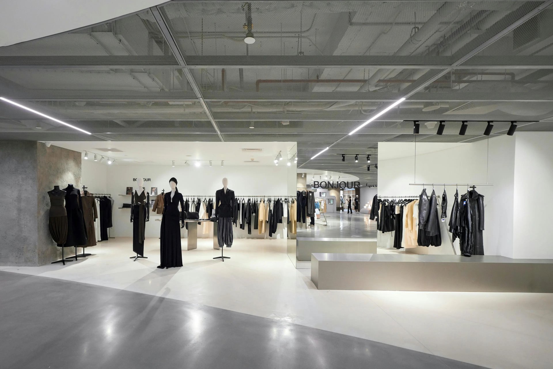 Không gian được chia thành hai nhịp: Conscious – nơi hội tụ các thương hiệu trẻ, năng động như Bunny Hill, Goldie, Highchic; và Subconscious – khu trưng bày các nhà mốt chú trọng kỹ thuật may đo và cá tính thiết kế như Huong Boutique, White Ant, Thome. Giữa hai nhịp này, Rue Miche vận hành như một “cơ thể sống” với những khu vực giao thoa: Rotten Bar tái định hướng menu theo nguồn nguyên liệu bản địa; Wellness Cave mang đến trải nghiệm yoga, thiền chuông, và không gian private shopping trong ánh sáng dịu.