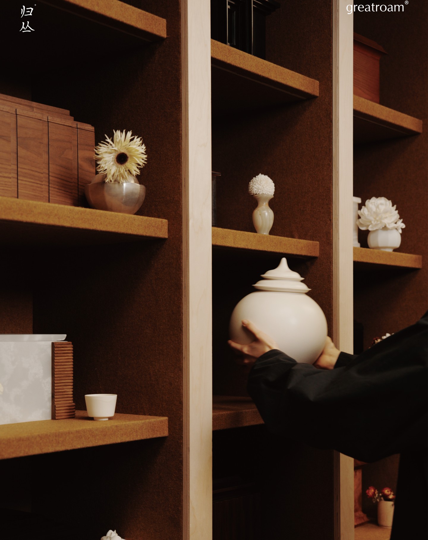 Phong cách tối giản của Greatroam pha chút tân Trung Hoa đối lập với những sản phẩm tươi vui và đầy màu sắc của Wu. Tuy vậy, cả hai vẫn chung một mục tiêu: biến ngành tang lễ cao cấp Trung Quốc thành lĩnh vực đặt trọng tâm vào cái đẹp, ký ức và sự sống.