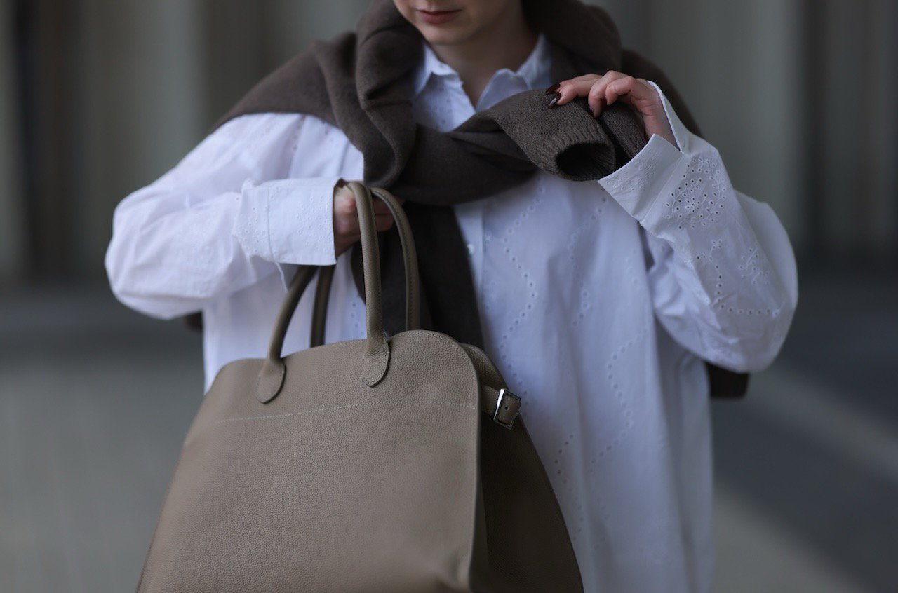 Từ thành công ấy, The Row phát triển thứ ngôn ngữ thẩm mỹ khép kín – nơi sự giản lược trở thành công cụ diễn đạt. Dáng áo, đường cắt, chất liệu đều tuân theo quy tắc “slouchy but structured” – mềm mại nhưng kỷ luật, tự do nhưng vẫn có trật tự. Những sản phẩm như áo len cashmere, giày loafer Ginza hay túi Margaux đều được tạo ra trong cùng tinh thần đó: tránh mọi sự phô trương, để từng mũi khâu và tỉ lệ nói lên tay nghề.