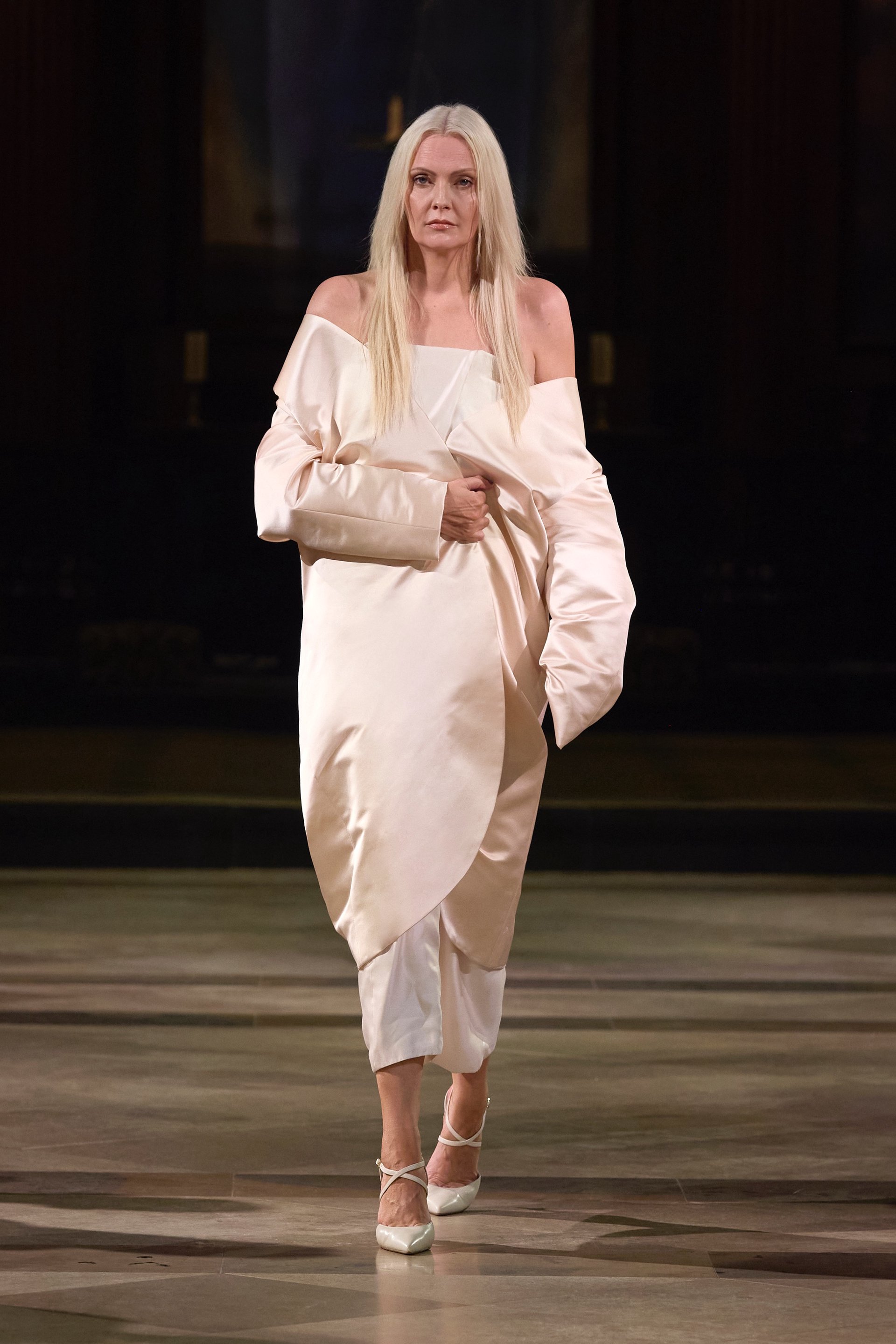 Nhưng vòng tuần hoàn này không chỉ được thể hiện trong trang phục. Nó còn được khắc vào không gian nhà thờ Christ Church Spitalfields cổ kính do Hawksmoor dựng nên vào thế kỷ 18, với khối kiến trúc táo bạo: một gian chính hình hộp giản đơn nâng đỡ ngọn tháp nhọn Gothic, tiền sảnh uy nghi cùng mái tam giác cong và những cột Tuscan thẳng đứng như lời tuyên ngôn bất dịch.