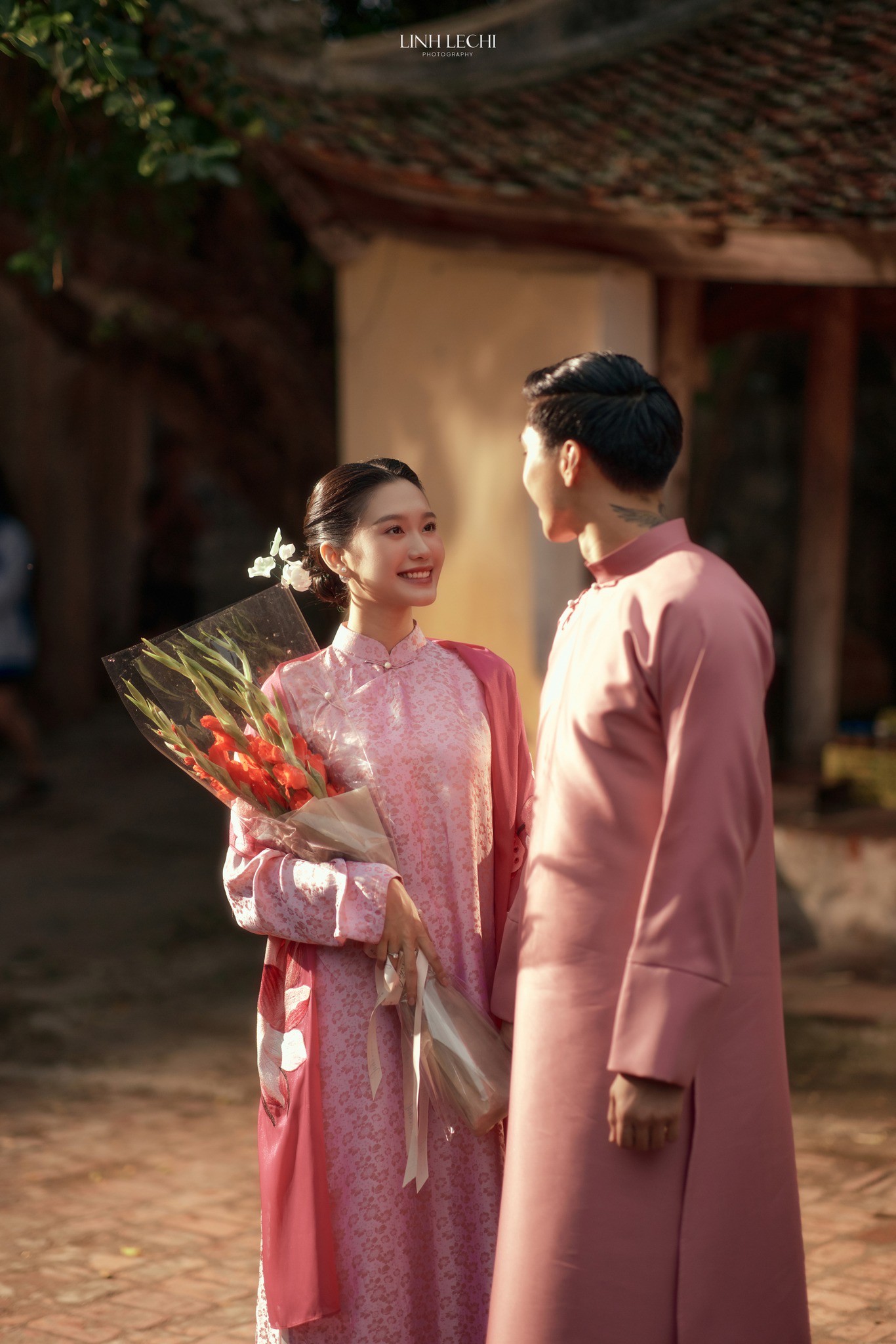 Khởi đầu của mùa cưới, trong tiếng trống rước dâu vang lên từ con ngõ nhỏ, người ta thấy bóng dáng cô gái khoác trên mình chiếc áo dài đỏ thẫm, tà áo khẽ lay trong làn gió còn phảng phất sương. Dải lụa điều mềm như nhịp tim hồi hộp của một khởi đầu, đượm mùi hương khói bàn thờ tổ tiên và mùi pháo hoa trắng rơi trước sân nhà. Mỗi bước chân, mỗi nụ cười ấy dường như đã được dệt sẵn trong ký ức của bao thế hệ trong từng tấc vải vóc của trang phục cưới.